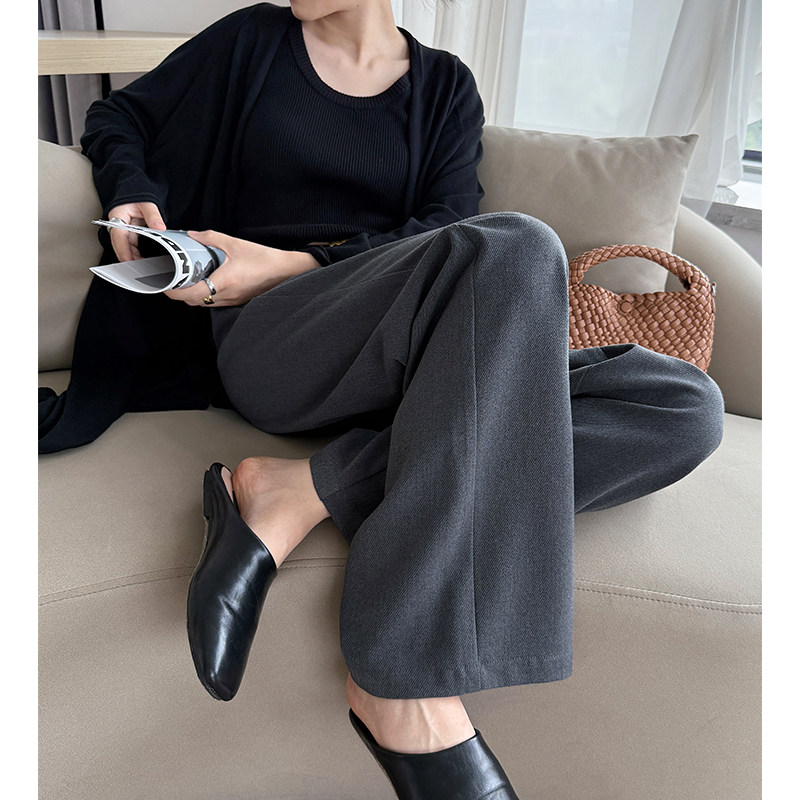 天韩氏伊人醋酸羊毛窄版直筒裤女2025冬款加厚高腰垂感休闲阔腿裤子