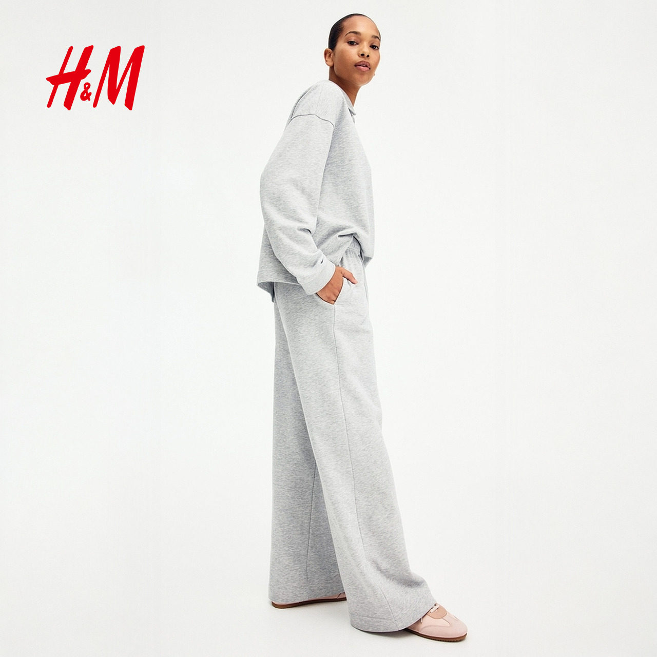 天猫HM女装卫裤2026春季新款宽松通勤休闲运动直筒裤腿慢跑裤1330301