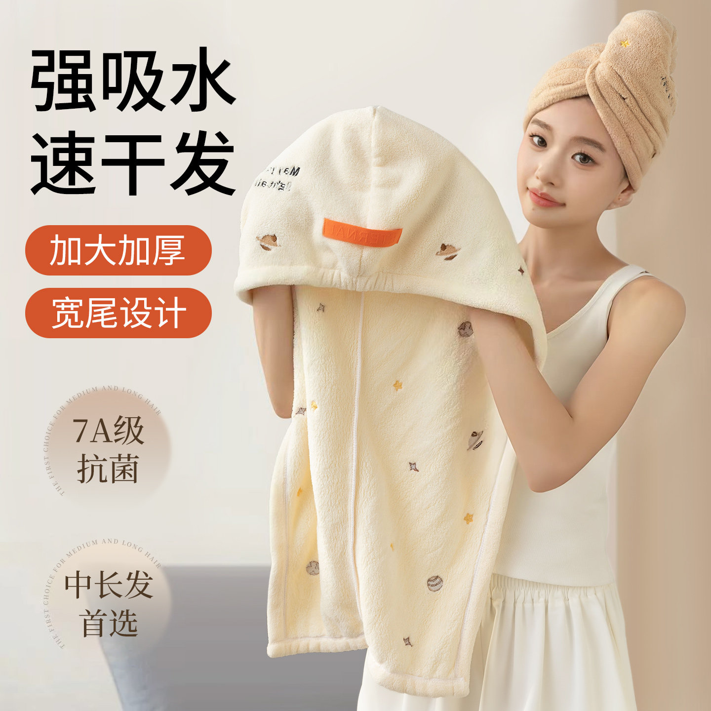 2025年全新推出的7A抗菌干发帽,专为女性设计,集超强吸水、速干、抗菌于一体。采用一片式包头设计,轻松包裹湿发,避免滴水困扰,使用便捷舒适。精选高品质超细纤维材质,吸水性能卓越,干发速度比普通毛巾提升数倍,同时具备7A级抗菌功能,有效抑制细菌滋生,呵护头皮健康。帽身轻盈贴合,不勒头、不滑落,适用于日常洗头、沐浴、护肤等多种场景。时尚简约外观,多色可选,既是实用好物,也是浴室必备单品。让干发更快速、更卫生、更省心,开启健康护发新体验。