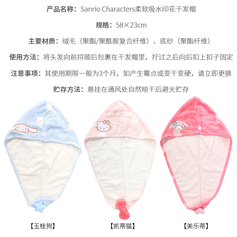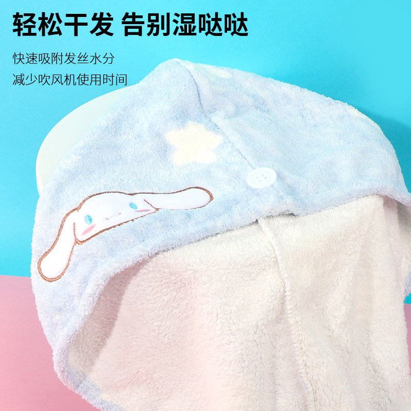 淘宝miniso名创优品三丽鸥柔软印花干发帽玉桂狗可爱超强吸水速干包头
