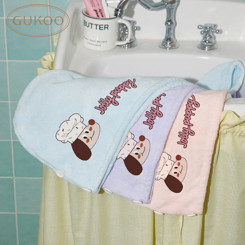 天猫Gukoo/果壳女士干发帽四季卡通款纯色简约柔软吸水干发帽