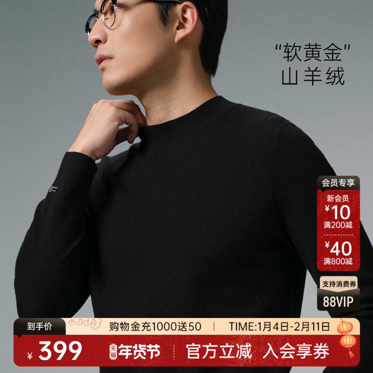 鹿王羊绒衫男100纯羊绒新款纯色山羊绒商务高端圆领男打底毛衣