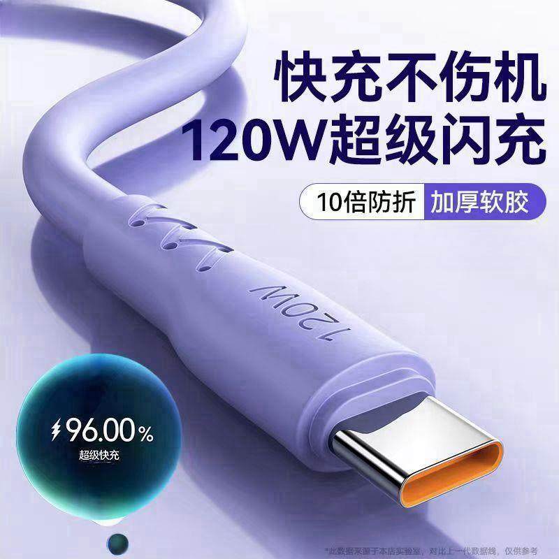 天猫120W超级快充Type-c数据线苹果充电线加粗6A充电线液态硅胶适用苹果8-14华为vivo荣耀oppo快充线闪充加粗
