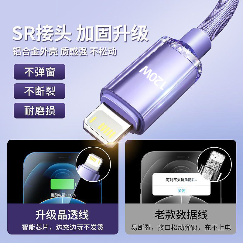淘宝120W快充电线适用苹果iPhone14/13/12/11Pro手机PD数据线车载闪充
