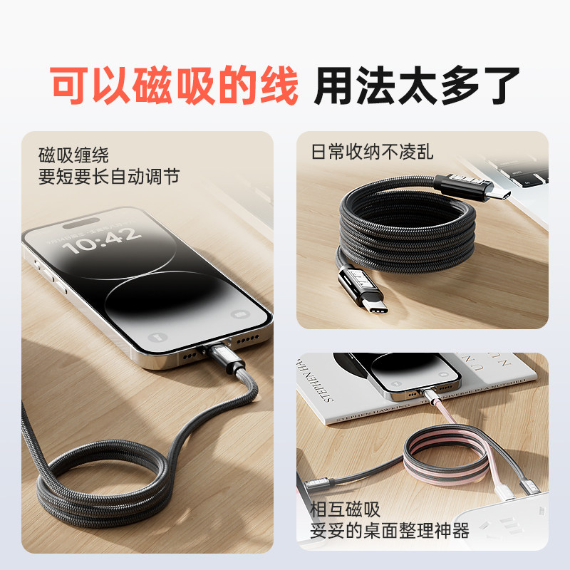 淘倍魔 磁吸收纳快充数据线手机平板充电线编织线适用于苹果16华为