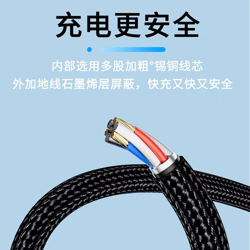 天透视芯片100w快充三合一数据线车载一拖三带灯通用超级闪充适用苹果iPhone华为Type-C安卓多功能充电器多头