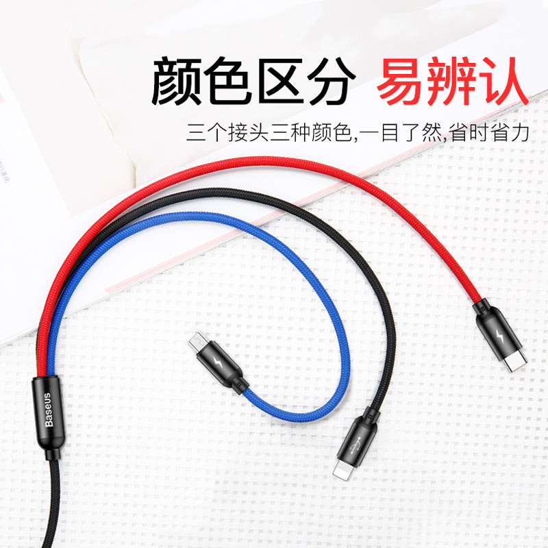 天猫倍思多用充电线三合一充电宝数据线三头短一托三带多功能充电器线一拖四快充车载车用适用于华为苹果安卓手机