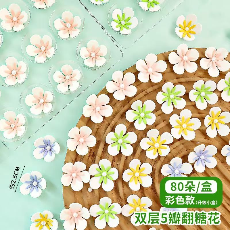 淘宝翻糖小花蛋糕装饰摆件巧克力花朵烘焙纸杯甜品西点插件可食用