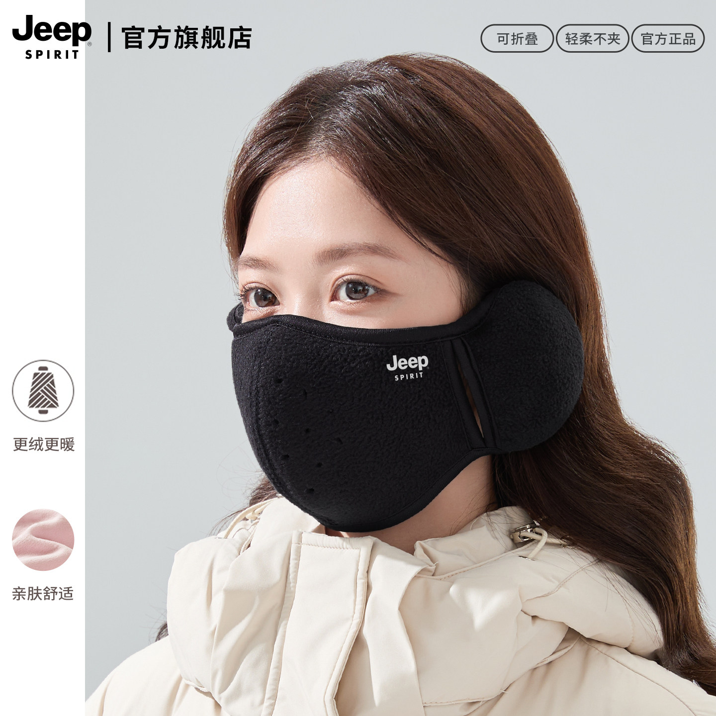 天猫JEEP SPIRIT吉普冬季保暖耳罩女士加绒防冻耳包护耳口罩防风面罩