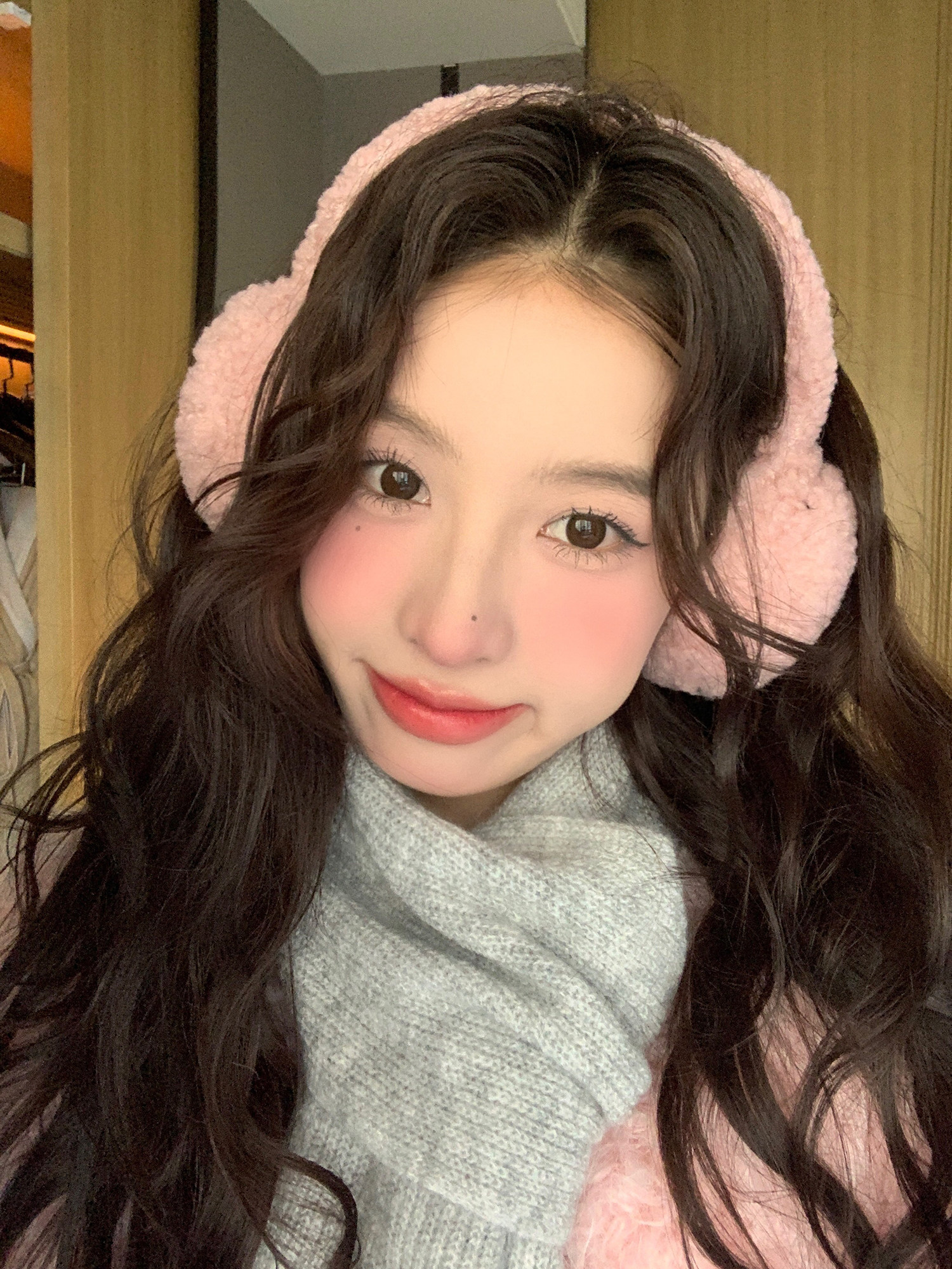 淘韩国软糯糯低饱和粉色针织耳罩女系带秋冬氛围保暖防寒耳套耳捂子