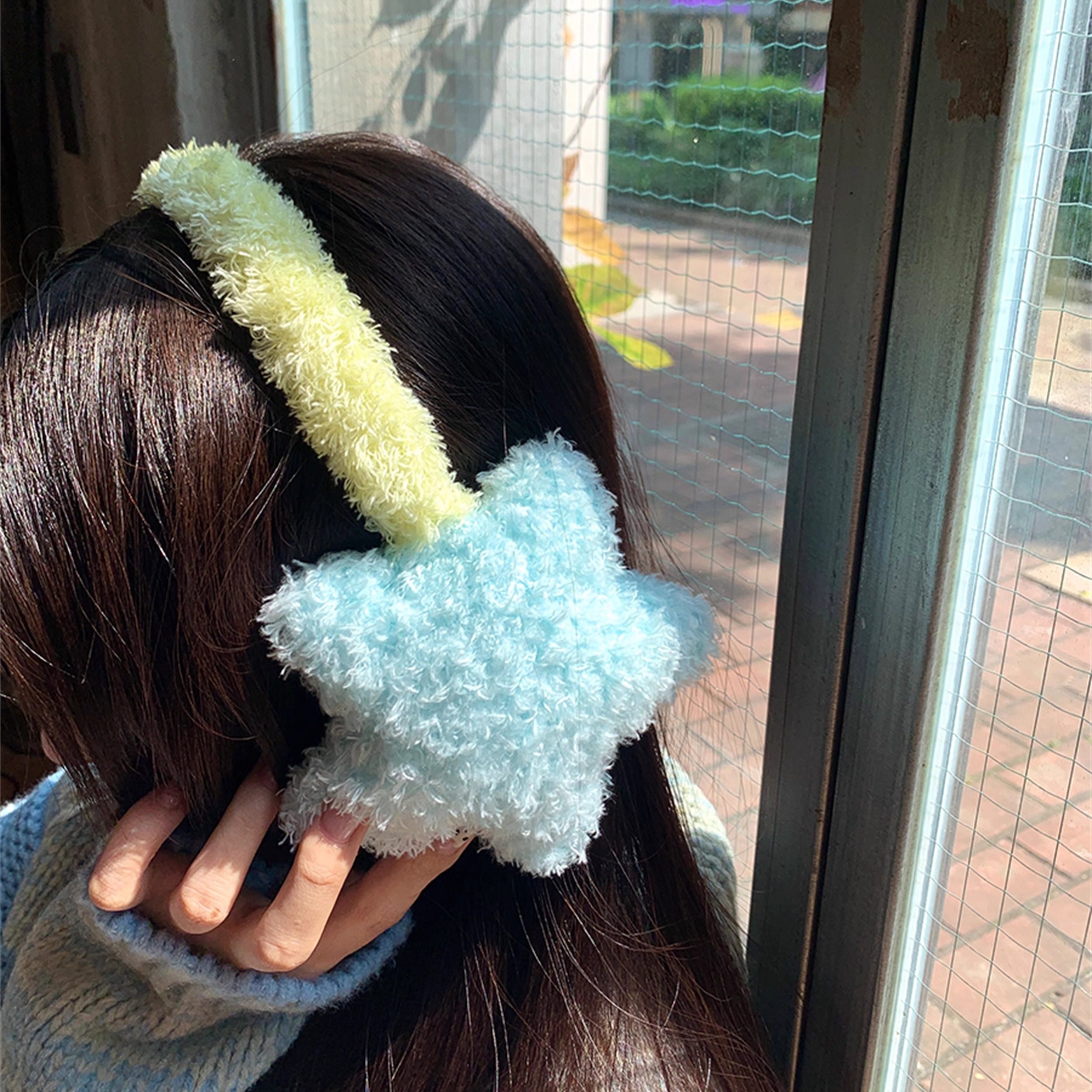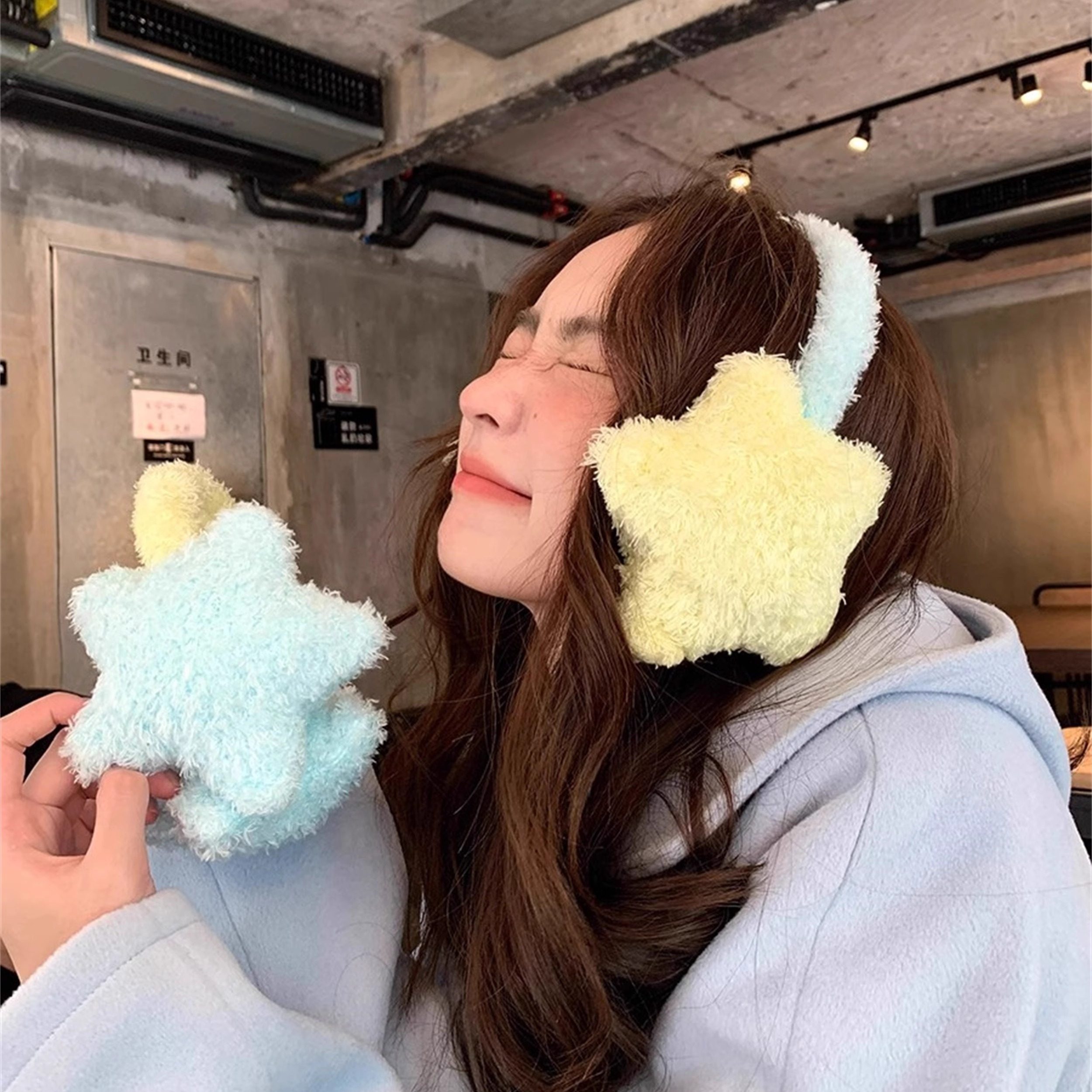 淘馨帮帮 户外骑行护耳耳套耳机式耳包毛绒绒拼色五角星耳罩女冬季