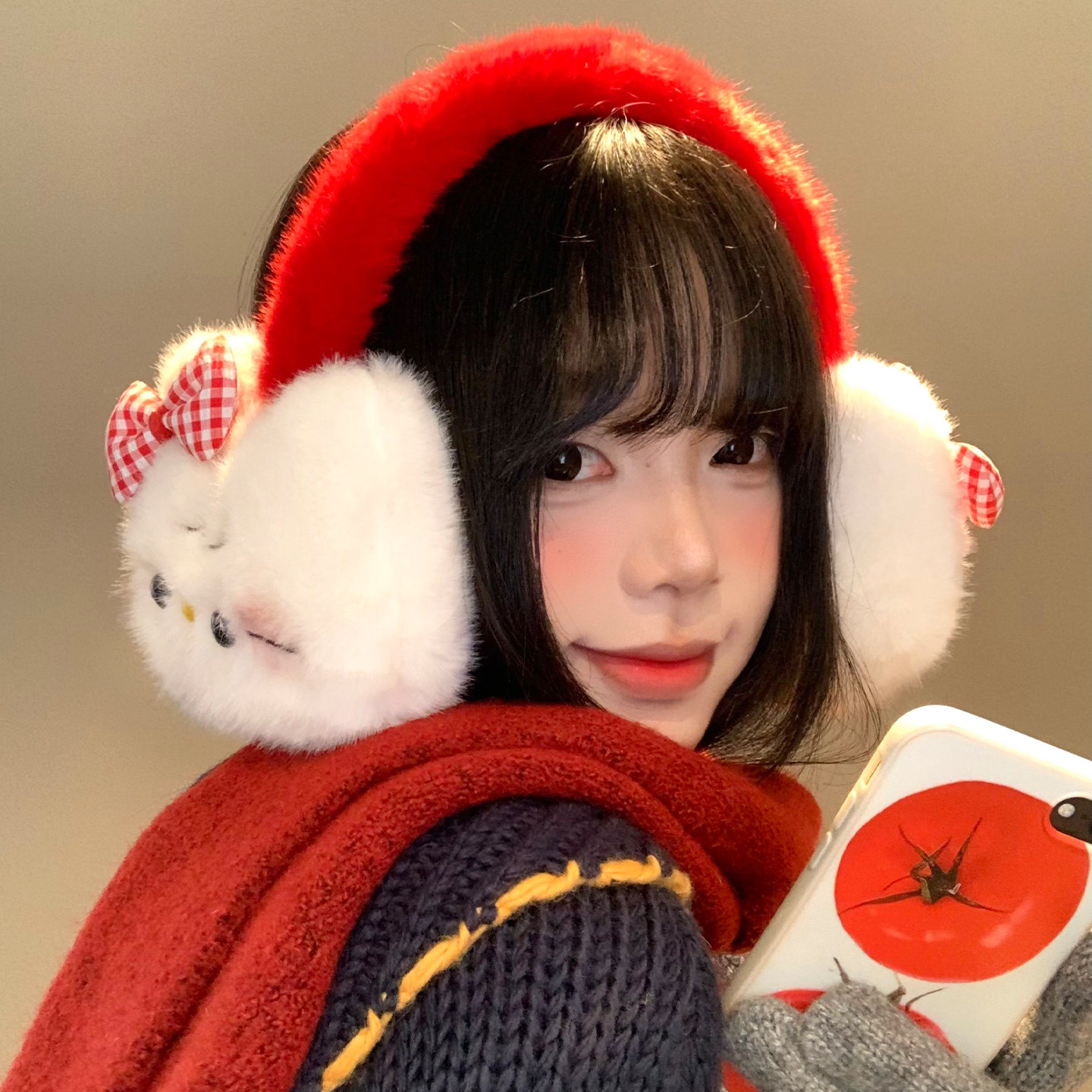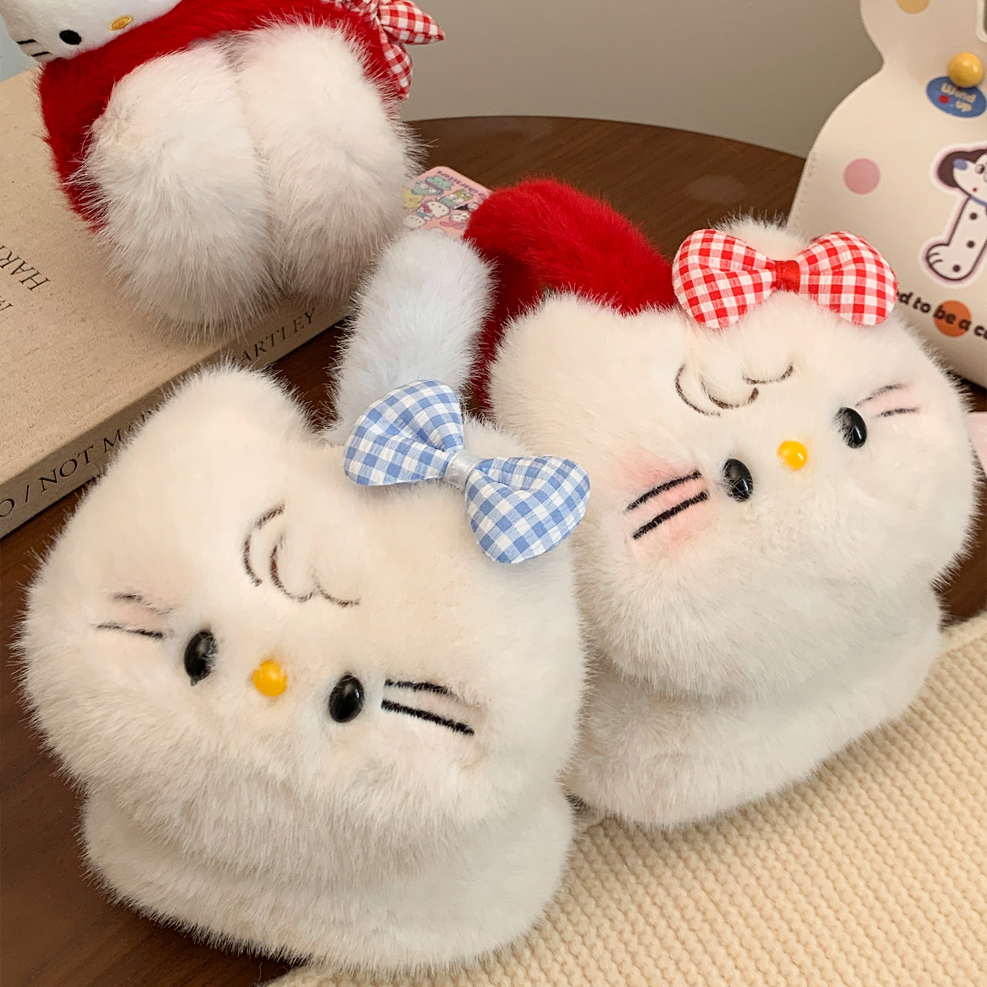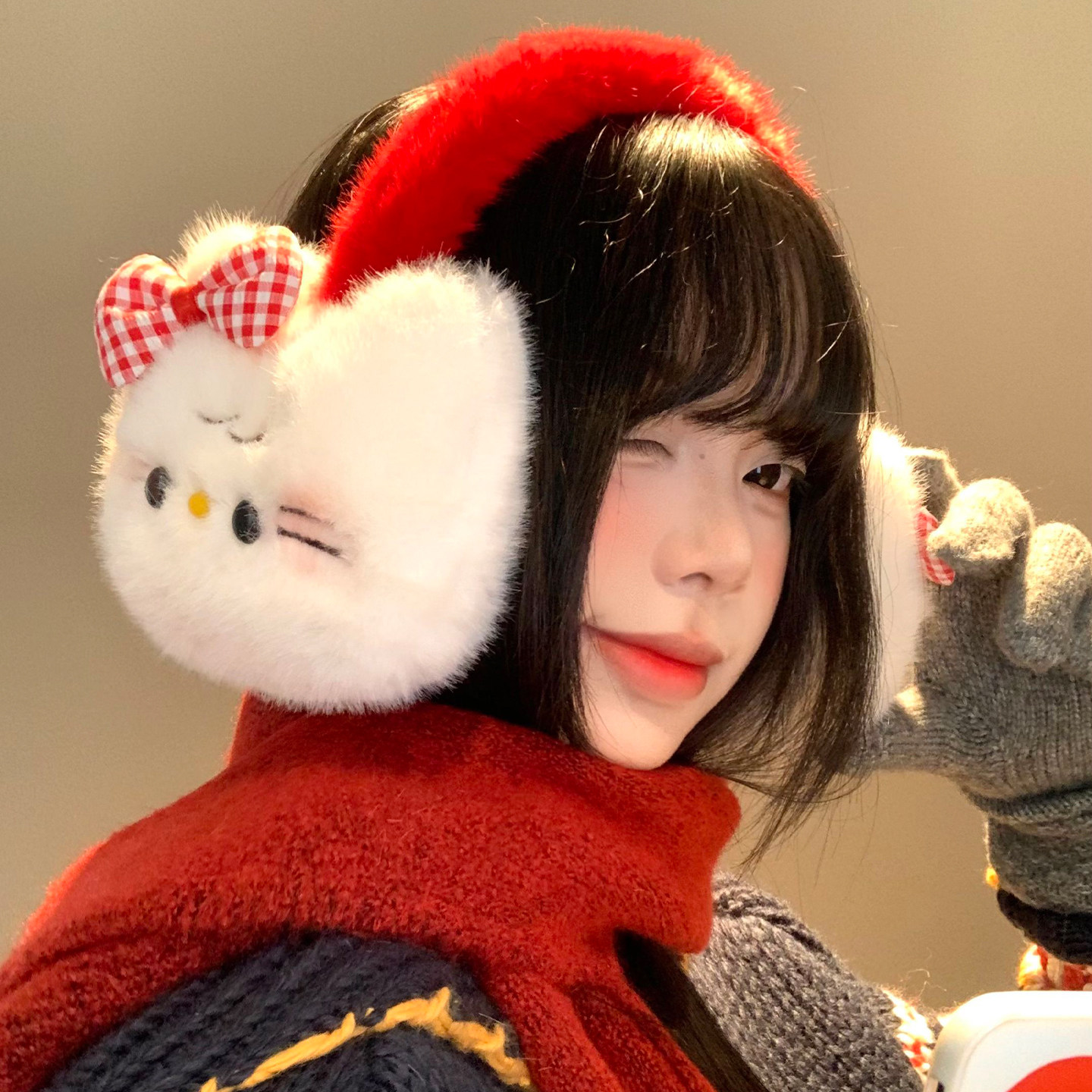 天猫可爱蝴蝶结猫咪毛绒耳罩女秋冬季防寒耳套骑行保暖耳暖耳包耳捂子