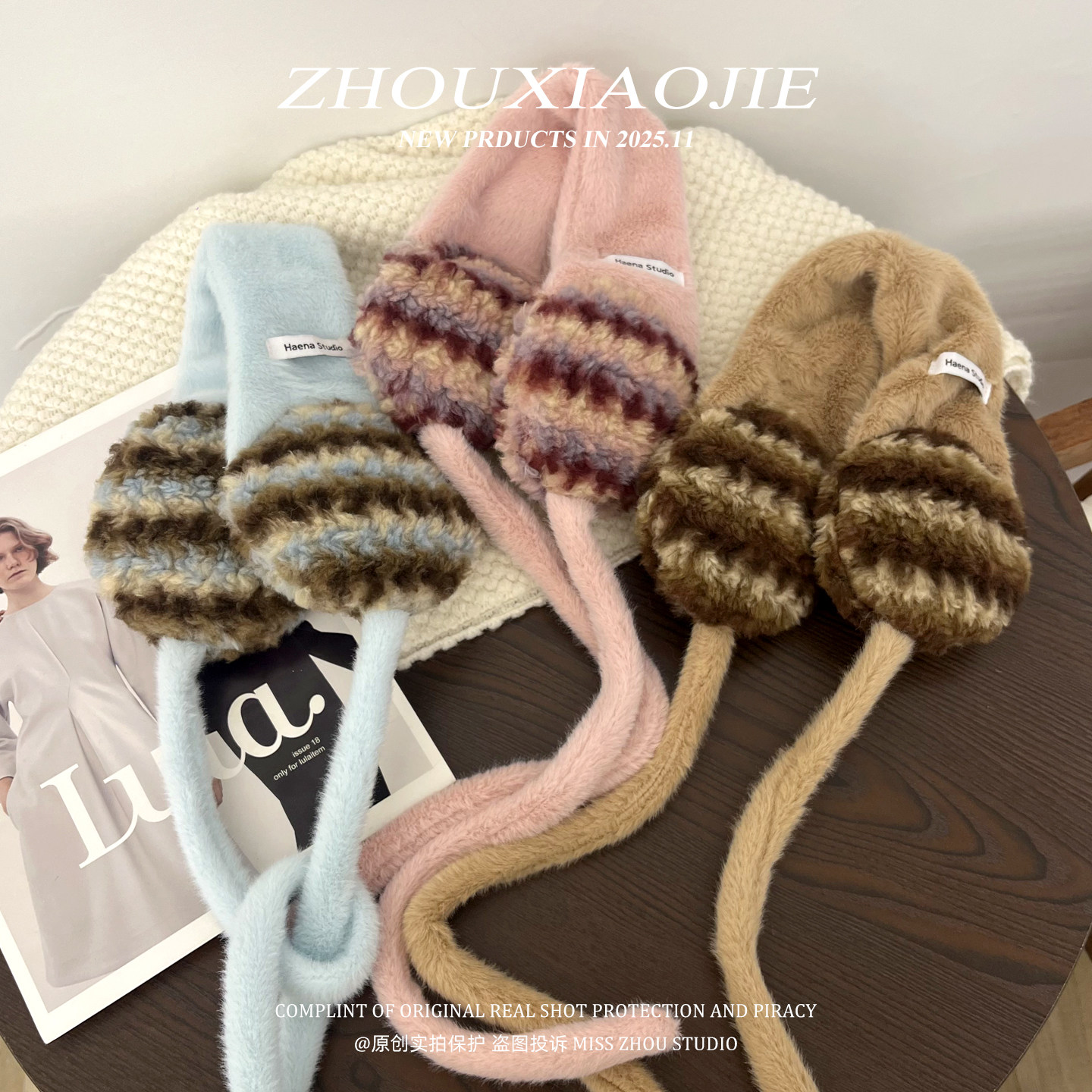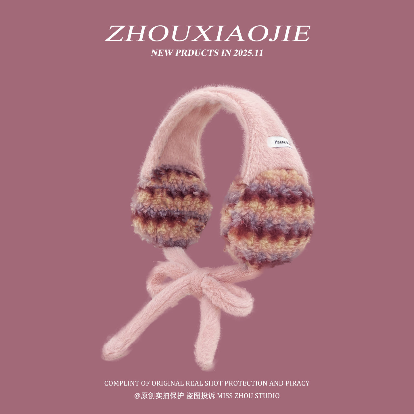 淘宝韩系ins撞色条纹毛绒耳罩女冬季旅游加厚保暖骑车防冻百搭耳捂子
