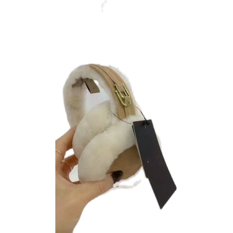 白色兔毛感大号长毛绒骑车保暖折叠耳捂防冻护耳冬季耳罩女耳套包
