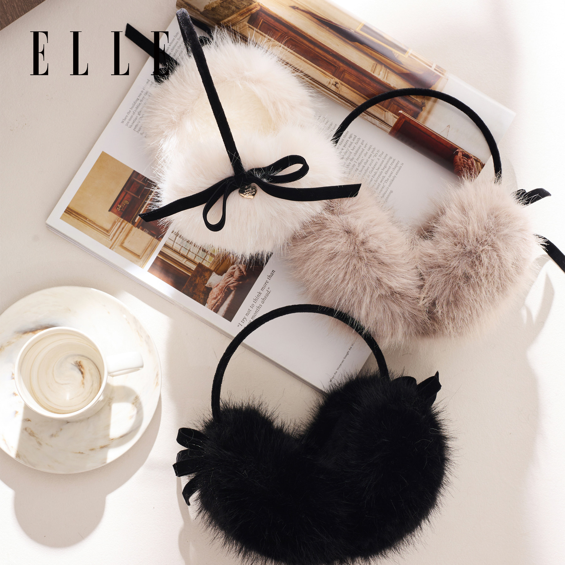 天猫ELLE仿兔毛耳罩女士秋冬季户外保暖护耳防寒可爱耳套耳包毛绒耳捂