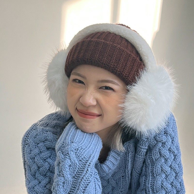淘馨帮帮 户外骑行护耳耳套耳机式耳包毛绒绒拼色五角星耳罩女冬季