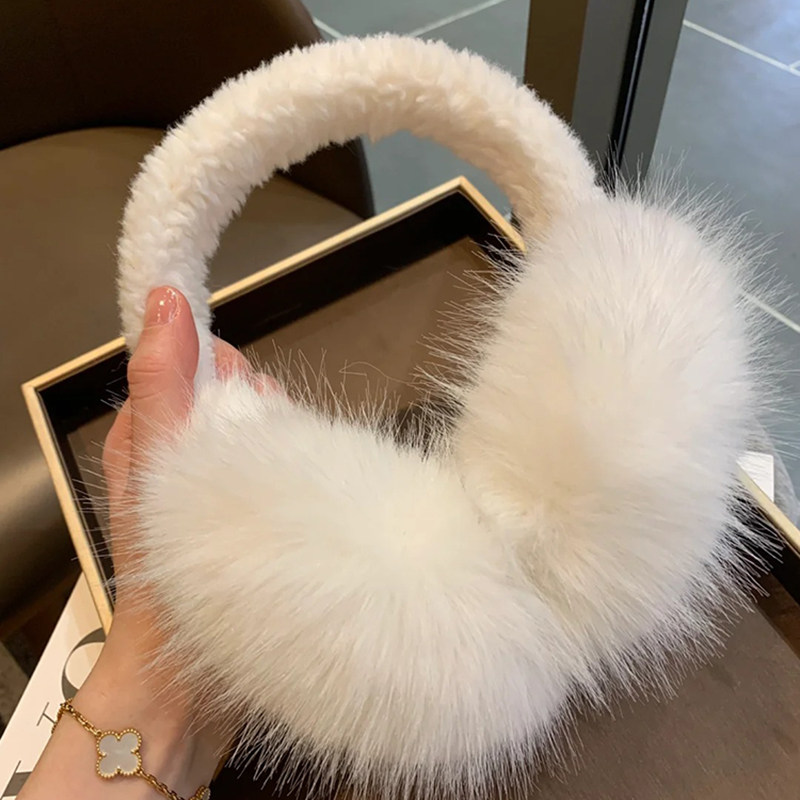 淘宝白色兔毛感大号长毛绒骑车保暖折叠耳捂防冻护耳冬季耳罩女耳套包