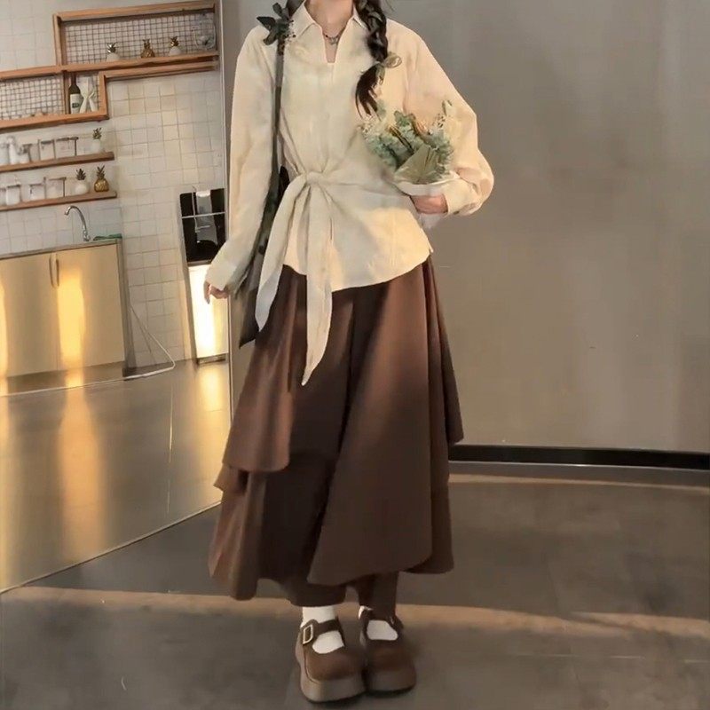 淘美式复古腰带半身裙女早秋季新款小众a字半裙梨型身材遮胯