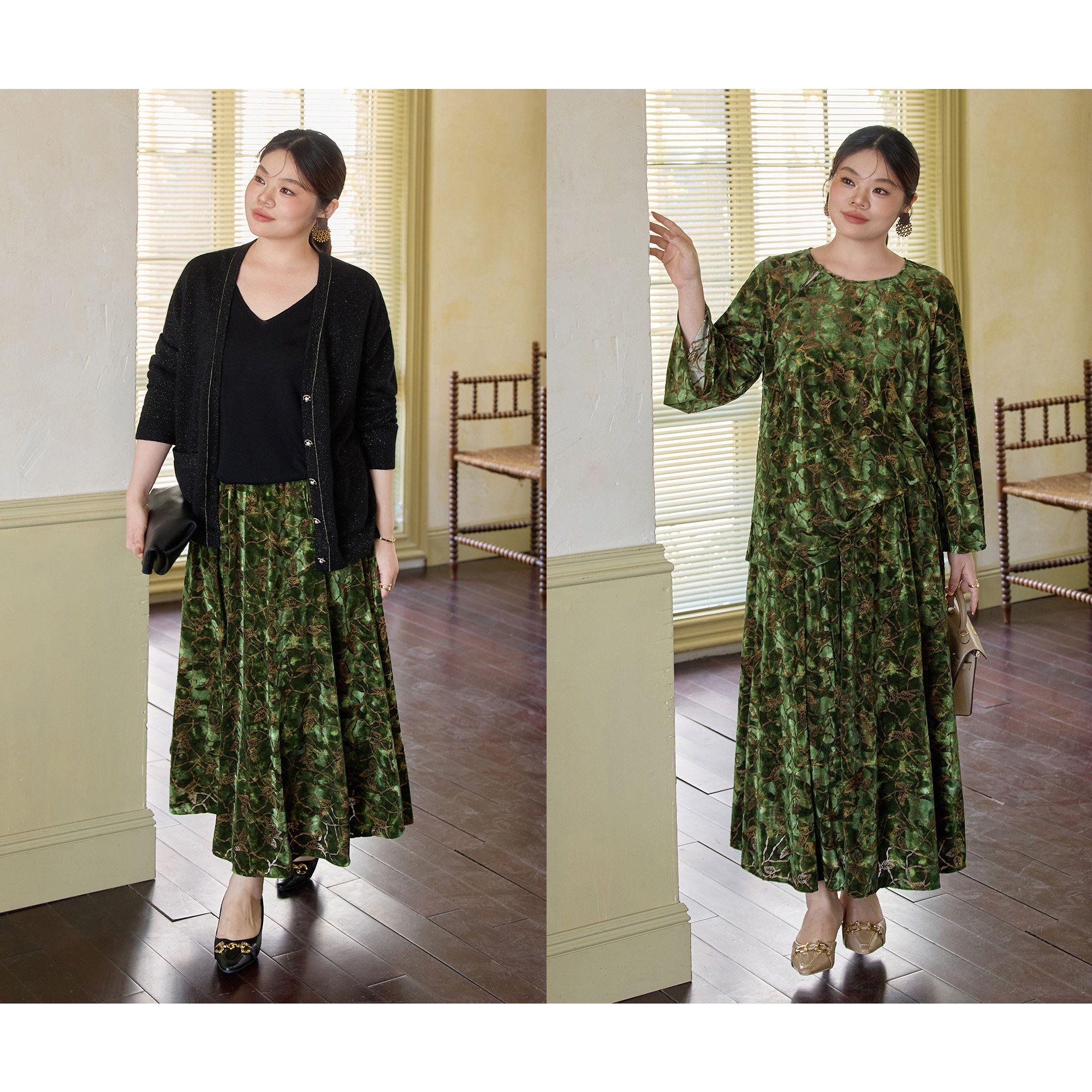 美丽客栈2025秋冬新款大码女装光泽感丝绒半身裙,以优雅A字廓形诠释女性柔美气质。精选高品质丝绒面料,触感细腻顺滑,自然垂坠中泛着低调光泽,尽显高级质感。宽松版型包容性强,巧妙修饰腰腹与臀腿线条,适合多种身形。高腰设计拉长腿部比例,搭配简约上衣或针织衫,轻松打造知性温婉的秋冬造型。无论是通勤、约会还是休闲场合,皆能展现从容自信的魅力。美丽客栈始终专注大码女性的穿搭需求,以匠心工艺与时尚设计,让每一位女性穿出舒适与美丽。