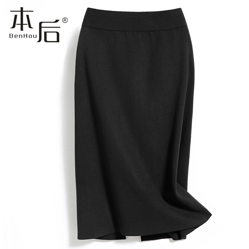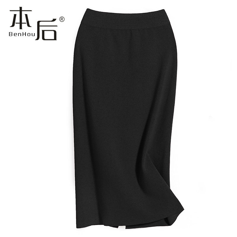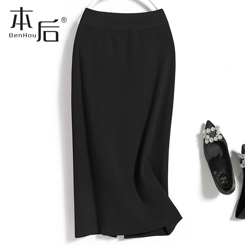 天猫F1315 开叉针织半身裙秋冬女中长款小个子高腰显瘦直筒裙包臀裙