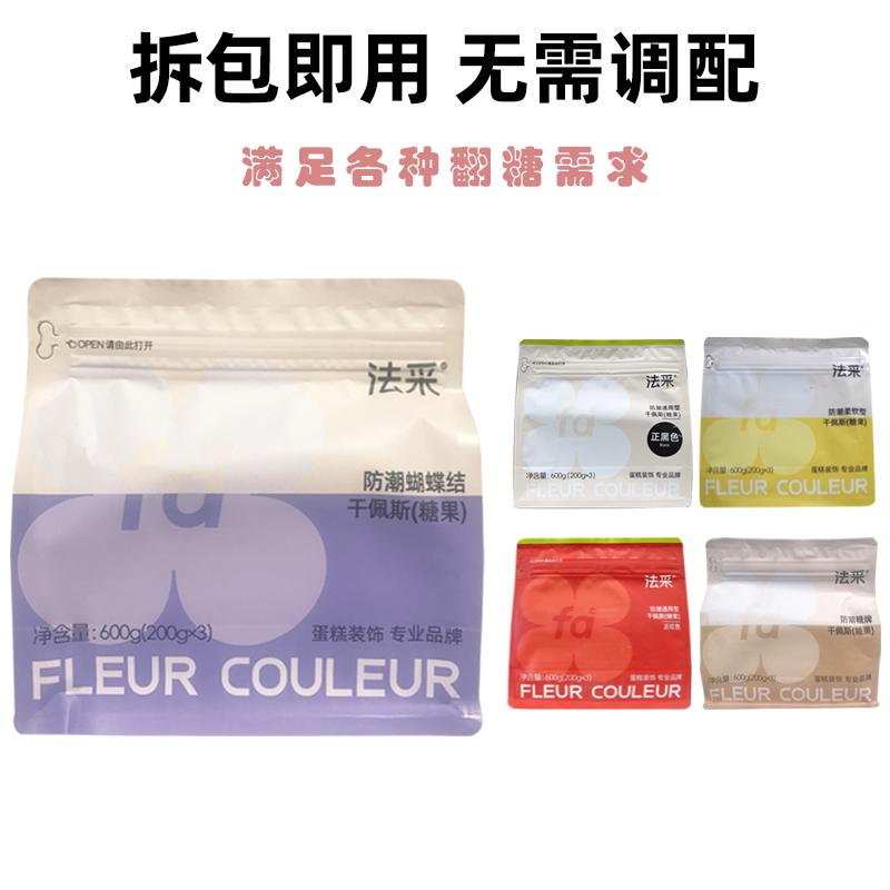 fc法采防潮彩色翻糖片皮膏干佩斯食用糖牌半成品生日蛋糕装饰原料