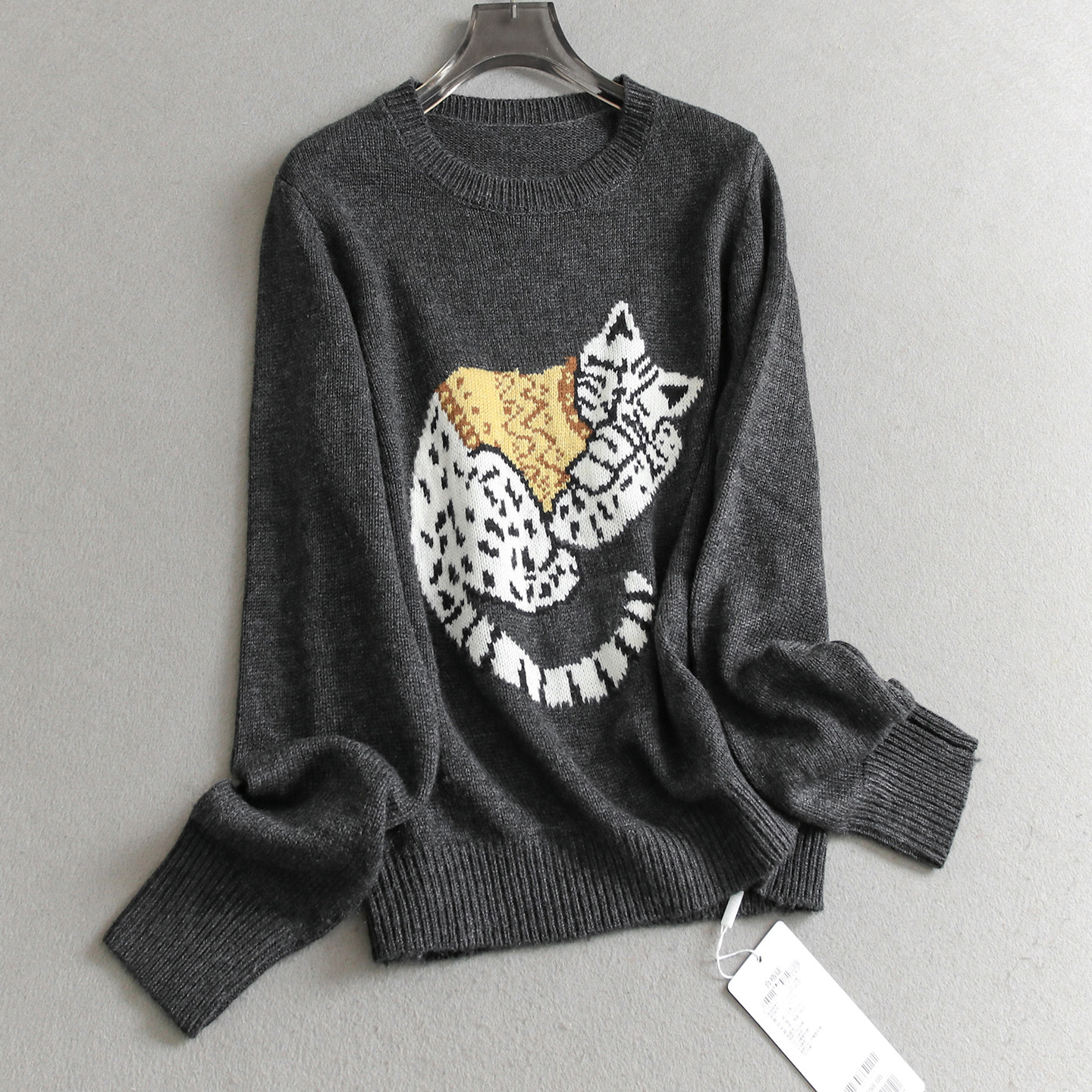 淘宝猫咪提花圆领长袖毛衣可配一整套纯色松紧腰半身裙女两件套装Q701