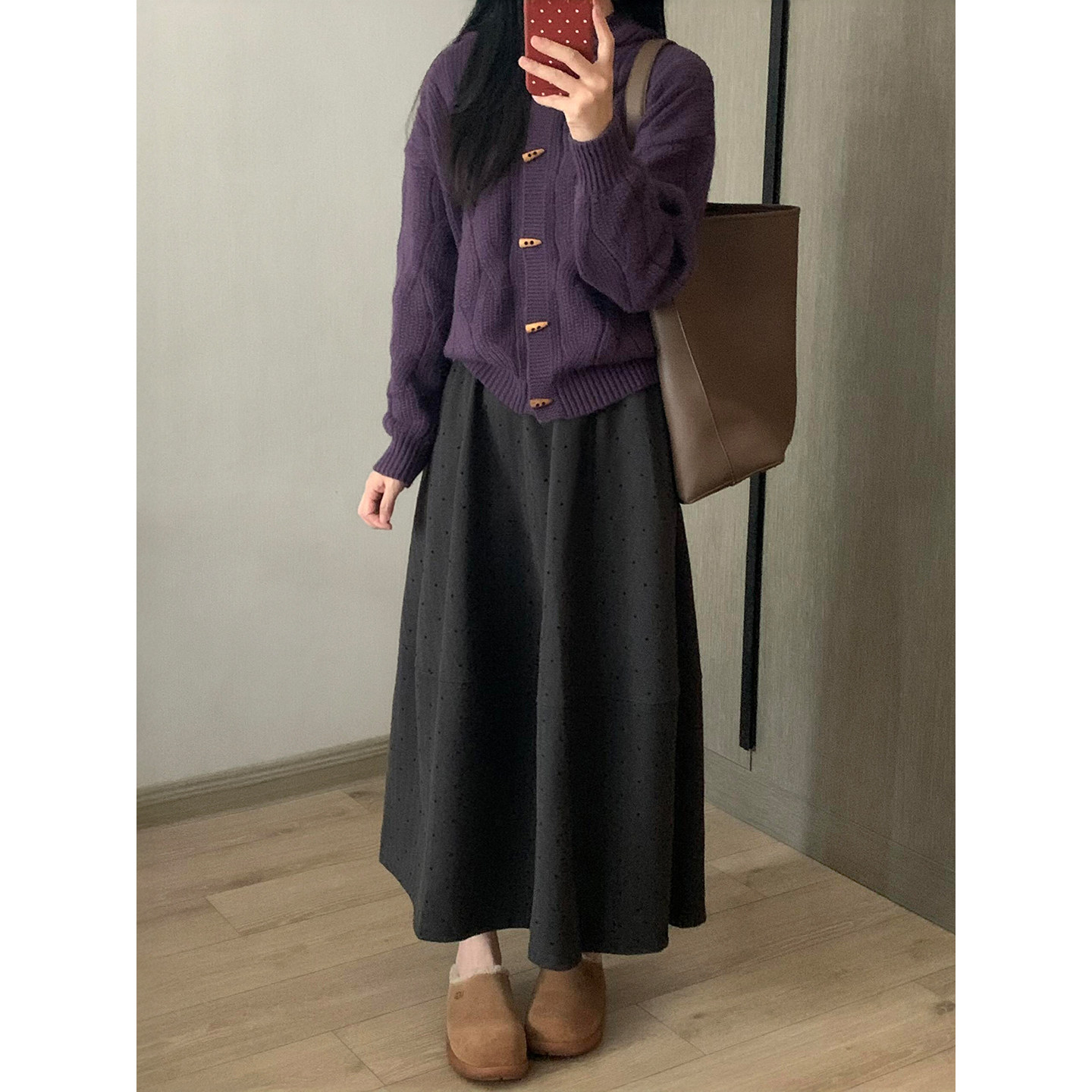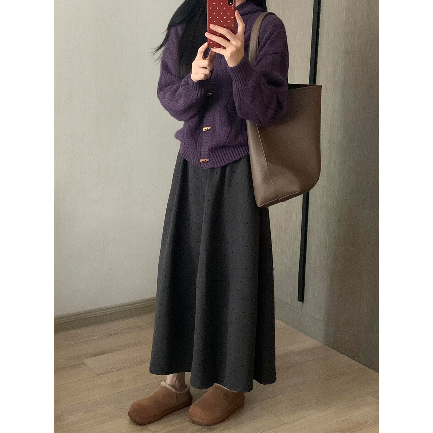 淘宝深灰色毛呢波点半身裙女秋冬新款胖妹妹mm高腰显瘦遮胯长款a字裙