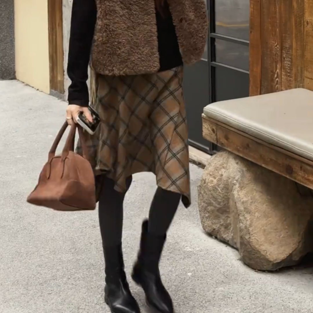 这款秋冬新款女士羊毛毛呢格子半身裙,采用优质羊毛毛呢面料,触感柔软、保暖性强,适合寒冷季节穿搭。高腰设计巧妙拉长腿部线条,视觉显瘦效果显著。不规则下摆打破常规,增添独特设计感与时尚气息,行走间更具灵动美感。经典格纹元素复古优雅,轻松搭配毛衣、大衣或针织衫,打造知性干练或温柔文艺的多样风格。中裙长度恰到好处,兼顾优雅与实穿性,无论是通勤、约会还是日常出行,都能展现女性自信魅力。整体剪裁立体有型,细节精致,是秋冬衣橱中不可或缺的时尚单品。