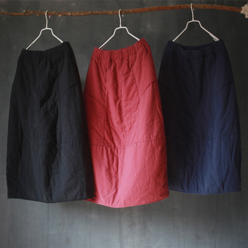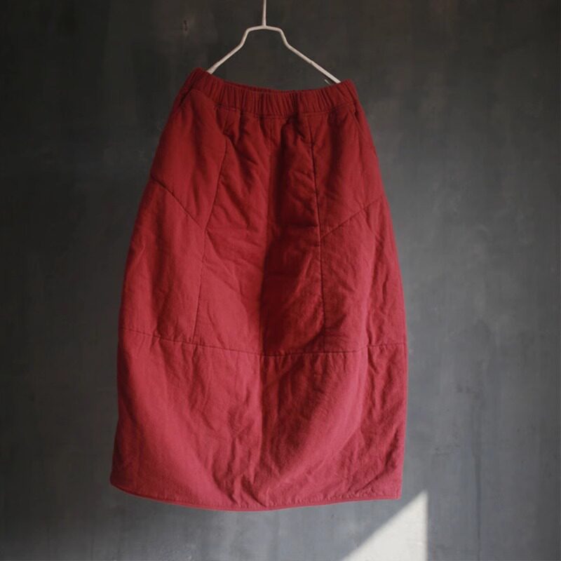 淘宝文艺复古夹棉半身裙女秋冬季松紧腰休闲加厚保暖棉裙子~清仓现货