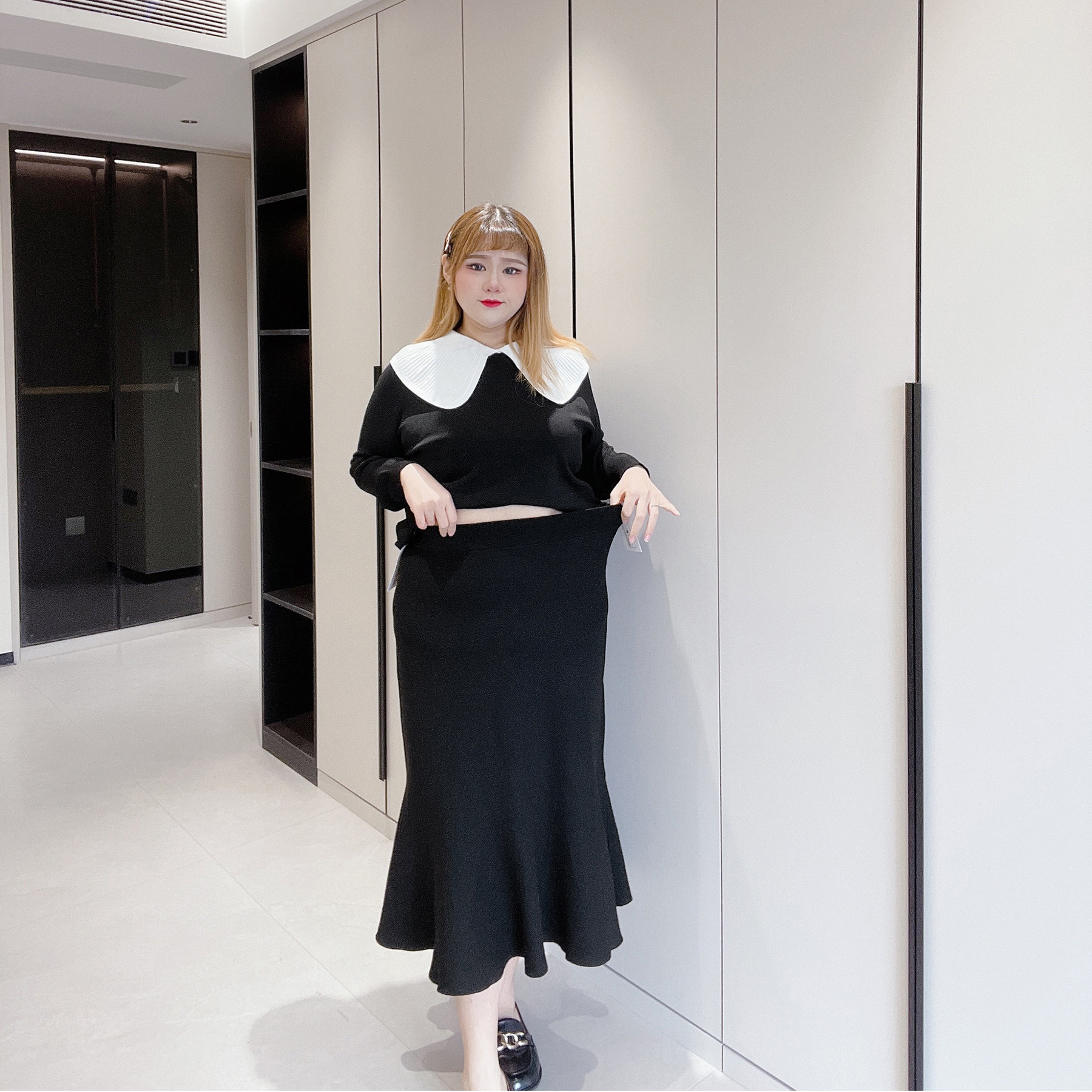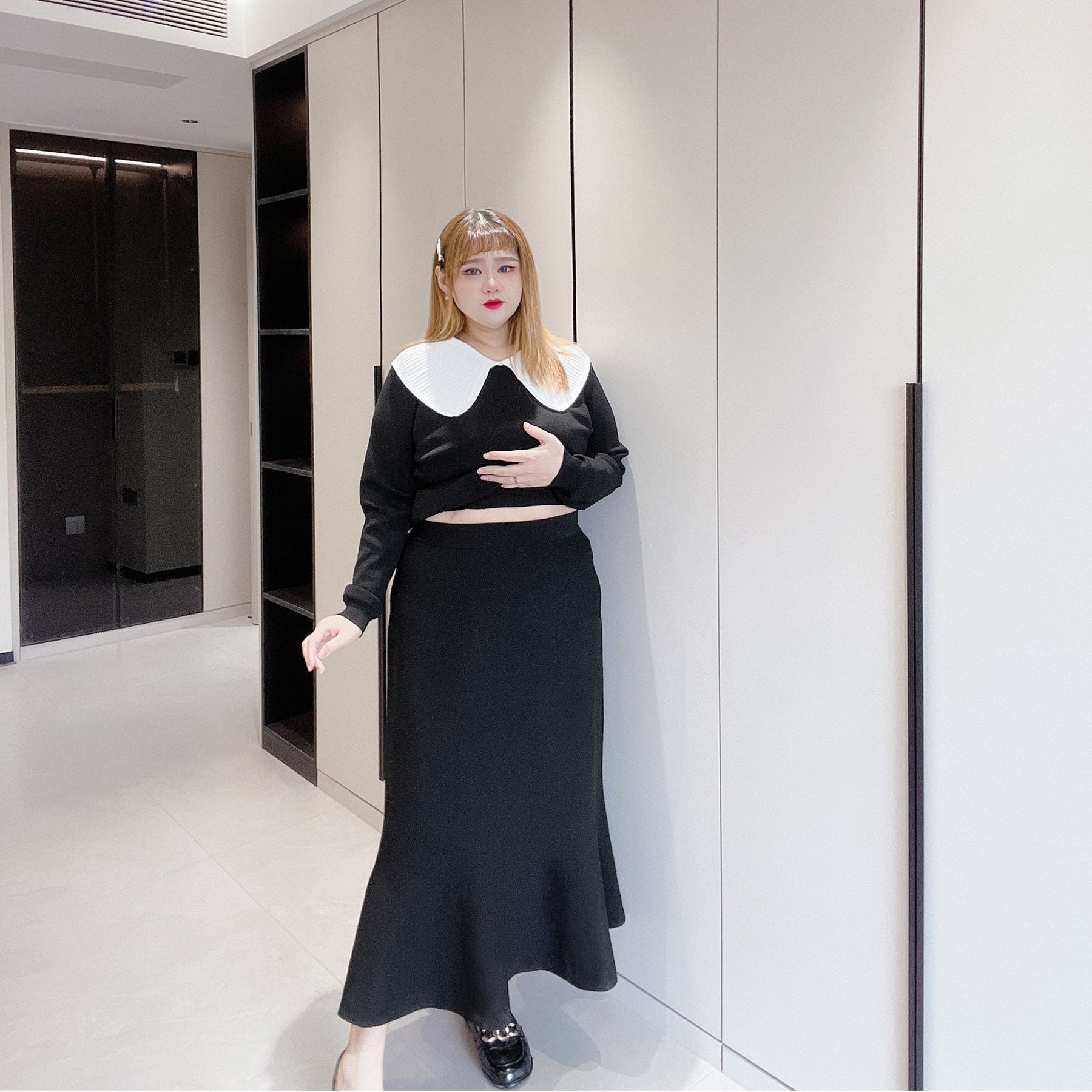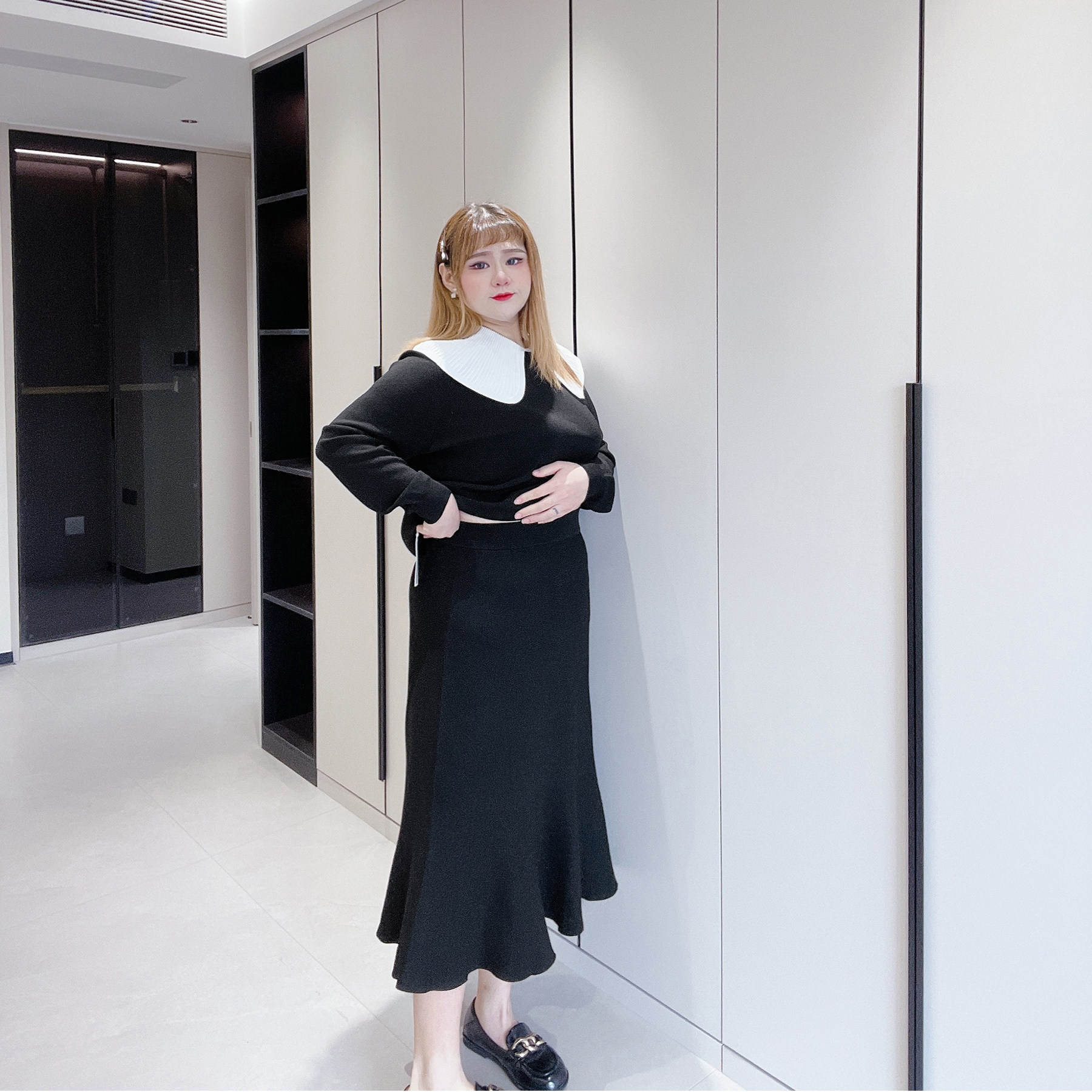 淘宝胖仙女莹莹大码女装胖mm秋气质百搭长裙子高腰遮肉针织鱼尾半身裙