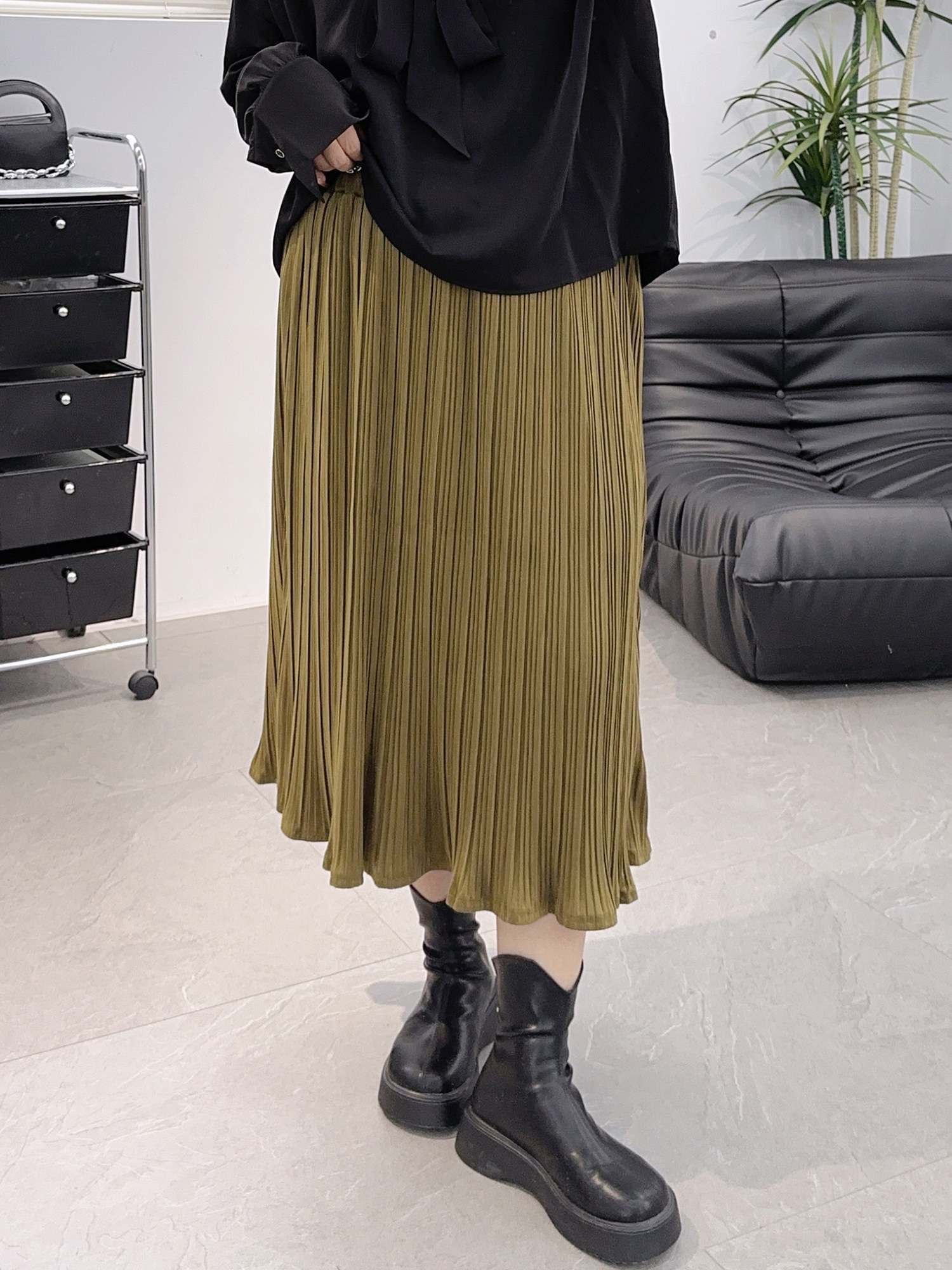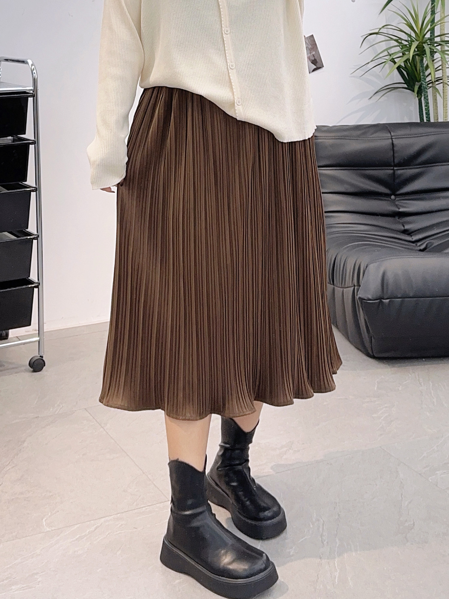 淘宝2023新款金丝绒半身裙女秋冬高腰中长款风琴百褶裙显瘦女士a字裙