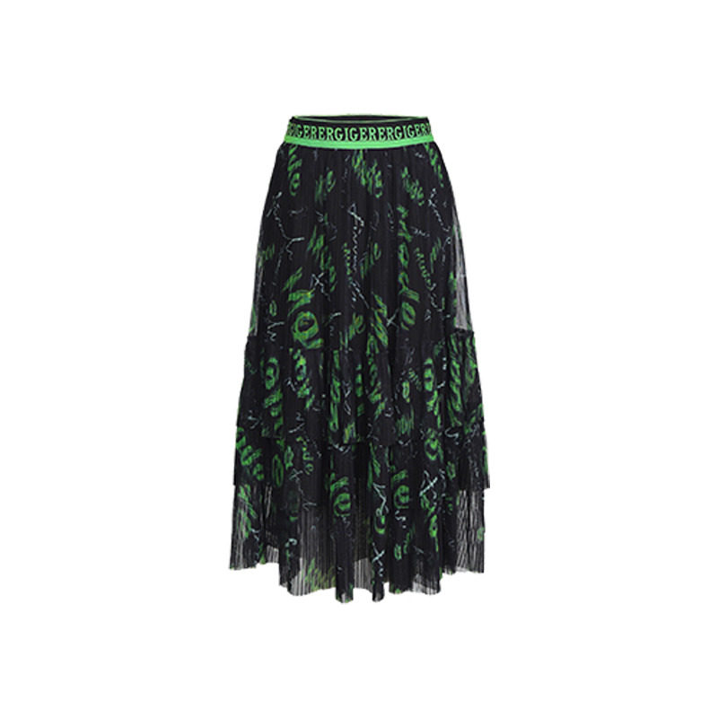 天猫2025冬季新品百丝法式森系复古氛围感半身裙字母图案百褶长裙女