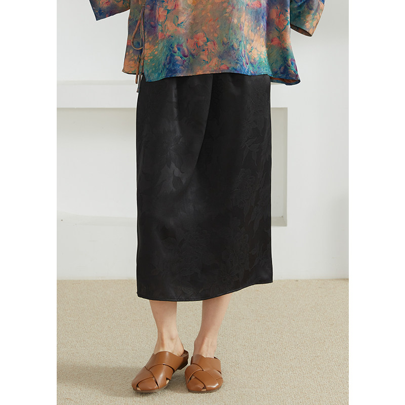 SILVIYE溯也香云纱真丝小黑裙,甄选优质桑蚕丝面料,融合传统香云纱工艺,质感柔滑、垂坠透气,尽显东方雅致韵味。A字版型设计,包容性强,修饰腰腹与臀腿线条,松紧腰头舒适贴合,穿脱便捷。长款半裙长度恰到好处,行走间飘逸灵动,既显高挑又不失优雅。经典黑色调百搭耐看,无论是搭配针织衫、衬衫还是小外套,都能轻松驾驭通勤、约会或休闲场合。细节精致,走线工整,彰显匠心品质。这款半身裙不仅是一件服饰,更是一种低调奢华的生活态度,为现代女性打造知性、从容的时尚魅力。