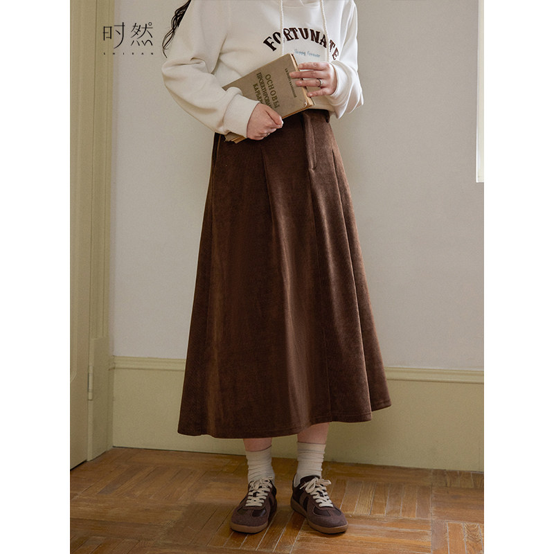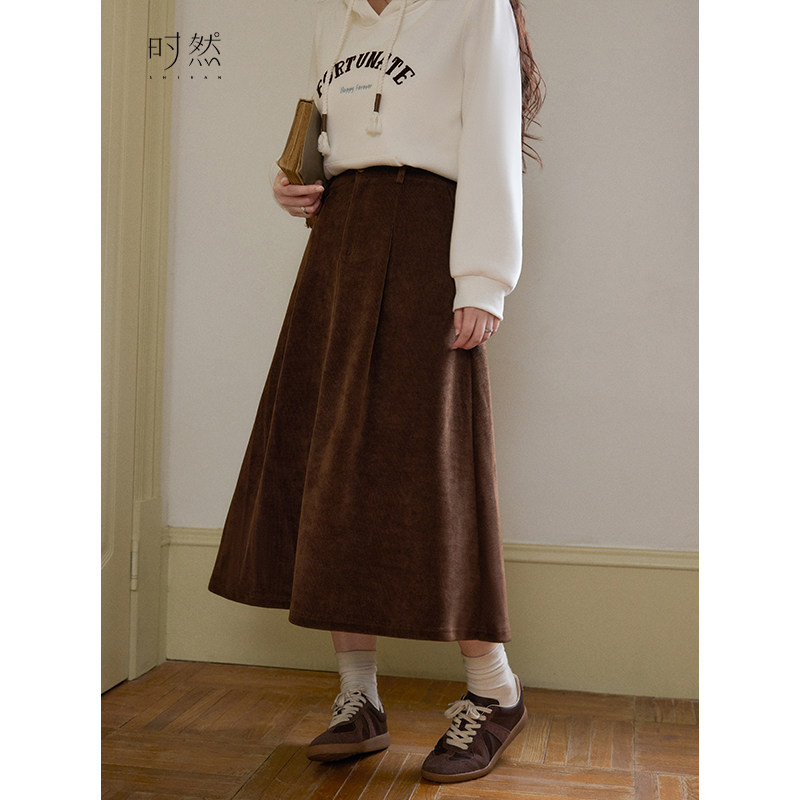 天猫时然大码微胖MM2026年冬新款韩系简约百搭实穿灯芯绒显瘦半身裙
