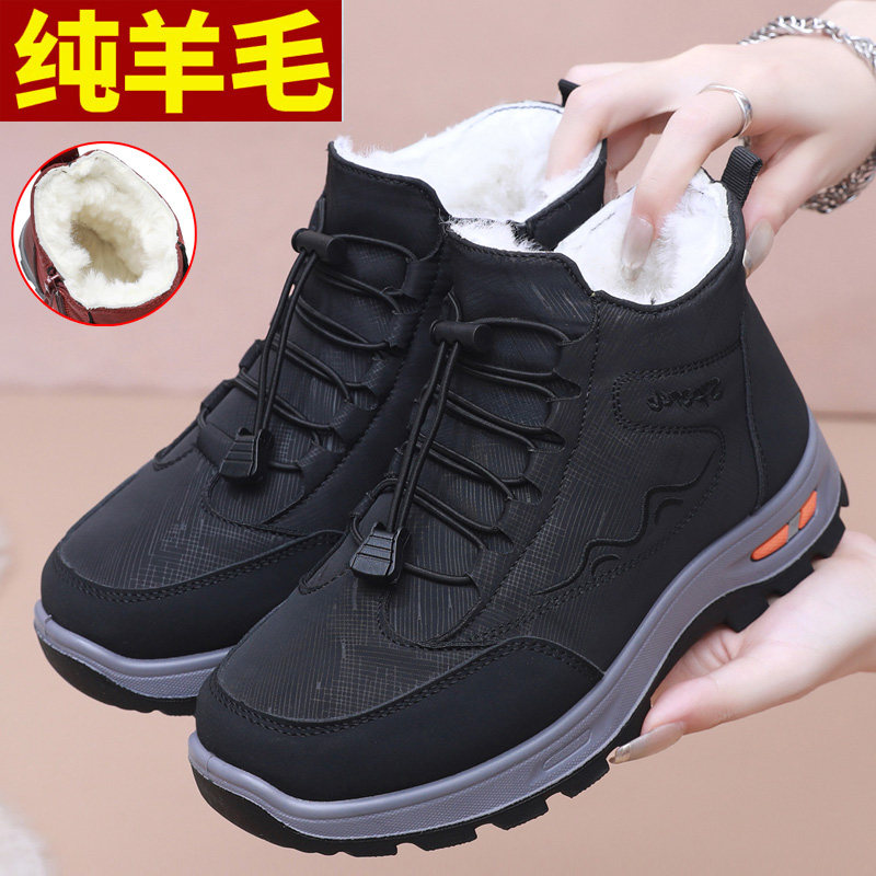 淘宝老北京布鞋女羊毛棉鞋中老年加绒休闲雪地靴防滑防水老人妈妈鞋冬