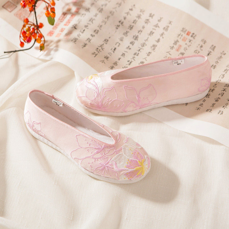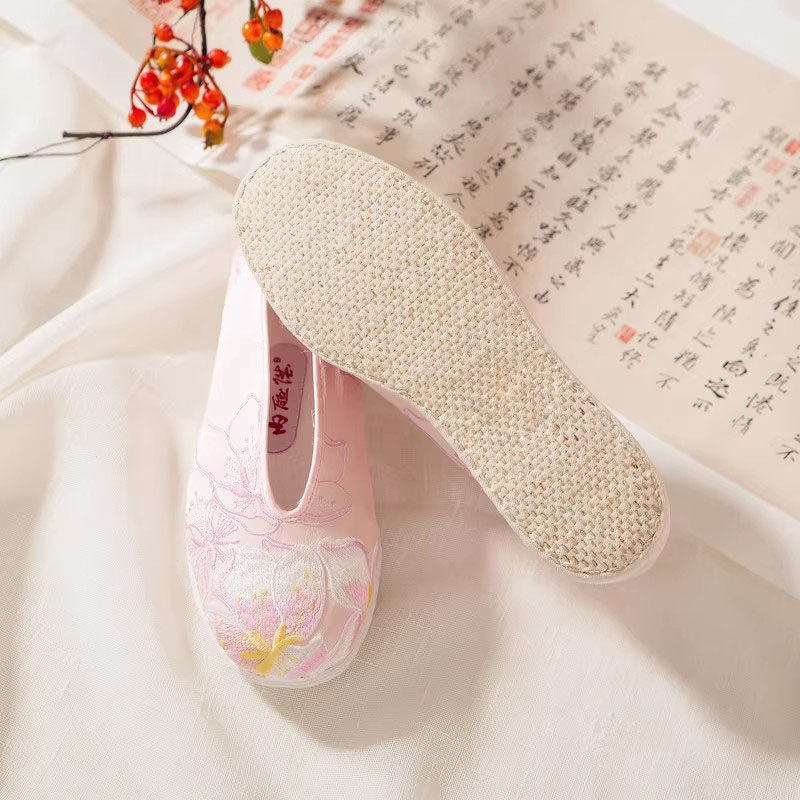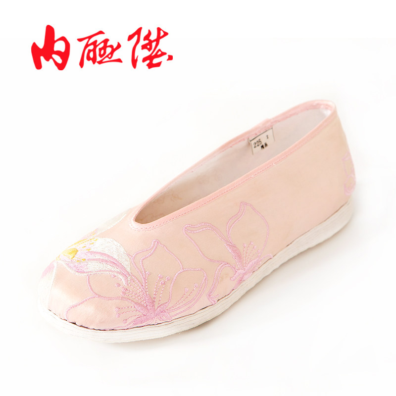 天猫内联升布鞋春秋季女鞋手工千层底女真丝刺绣桃花小元单鞋8646A