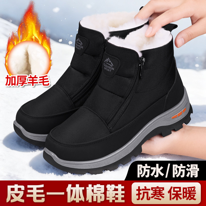 天猫老北京布鞋女冬季加绒保暖羊毛中老年妈妈棉鞋防水防滑老人雪地靴
