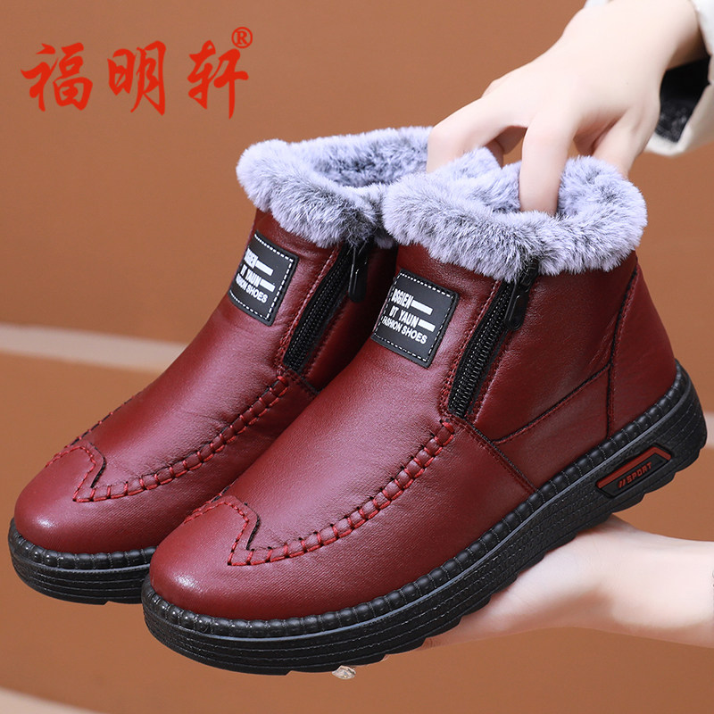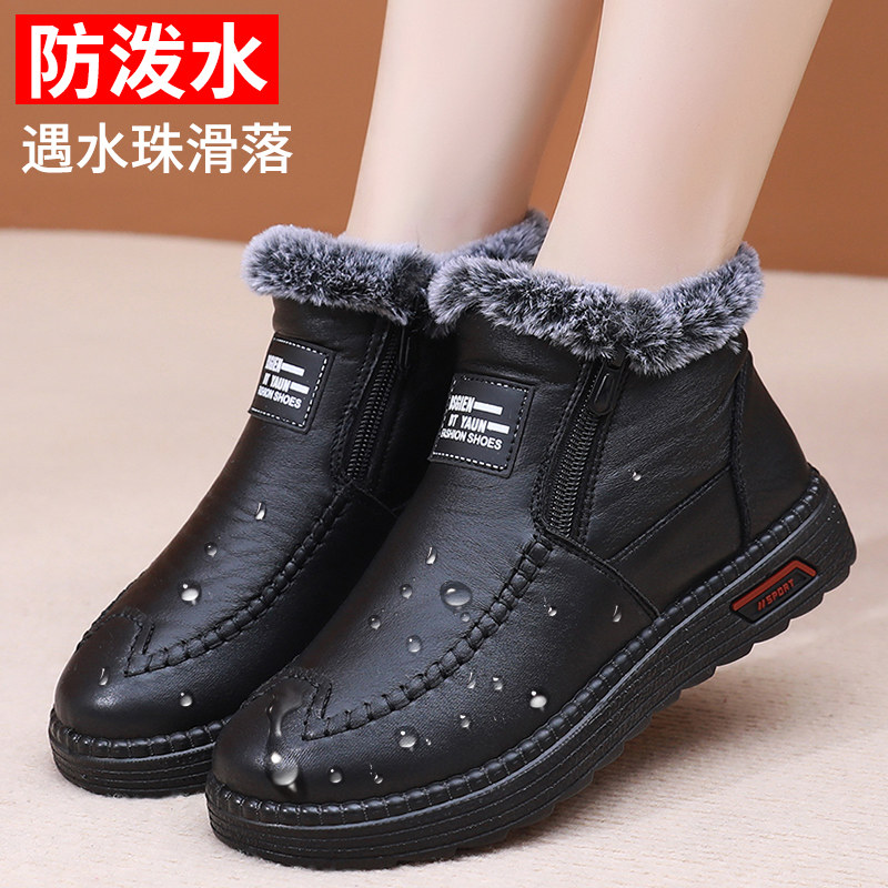 天老北京布鞋女冬季加绒保暖羊毛中老年妈妈棉鞋防水防滑老人雪地靴