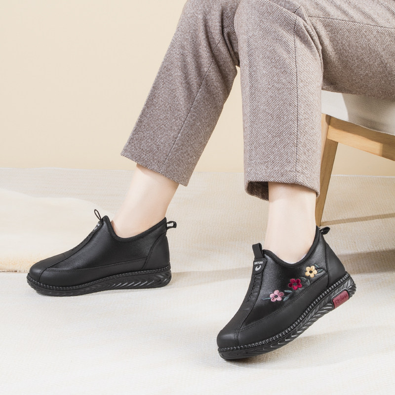 这款老北京布鞋专为中老年女性设计,采用传统手工纳底工艺,舒适透气,久穿不累。内里加绒羊毛,保暖性强,特别适合寒冷冬季穿着。一脚蹬设计方便穿脱,尤其适合行动不便的老人。鞋底采用防滑橡胶材质,抓地力强,行走更安全。鞋面选用优质棉布,柔软亲肤,不磨脚。整体轻便耐穿,兼顾舒适与实用,是送给妈妈、奶奶的贴心之选。无论是居家、散步还是短途出行,都能提供温暖的足部呵护,展现经典老北京布鞋的质朴与温情。