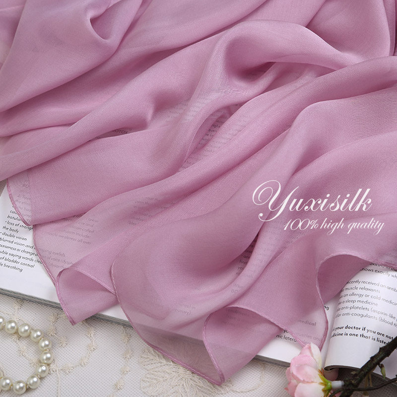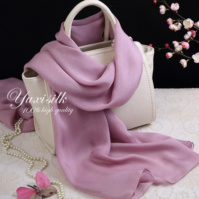 天猫烟紫色纯色100%桑蚕丝长款真丝丝巾披肩女纱巾春秋冬夏季丝绸围巾