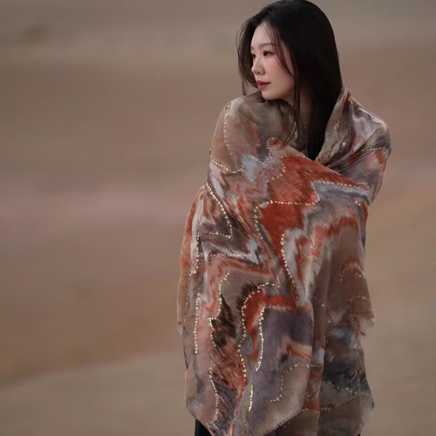 淘宝废土风沙漠大西北埃及迪拜旅游穿搭防晒丝巾包头巾披肩棉麻围巾女