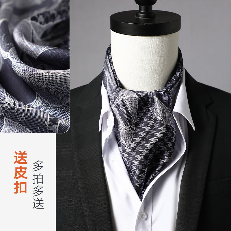 淘宝真丝男士丝巾小方巾2025冬季新款搭西装复古英伦领口巾桑蚕丝围巾