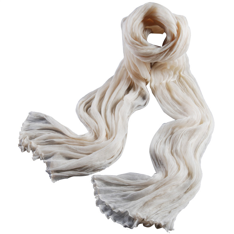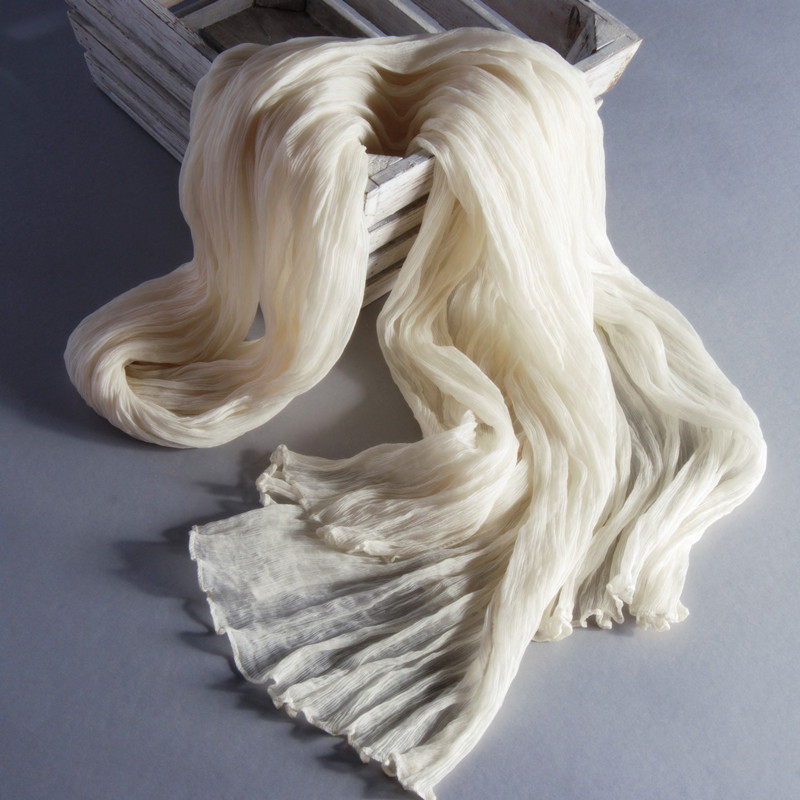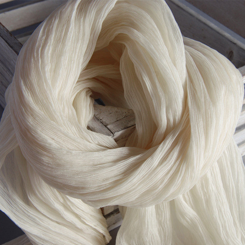 淘宝2025新款皱真丝围巾女百搭披肩秋冬季薄款保暖桑蚕丝巾纯色米白色
