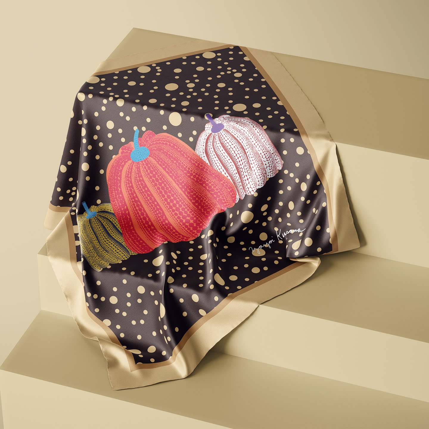 淘宝草间弥生波点南瓜丝巾方巾头巾围脖屁帘装饰画芯企业礼品来图定制