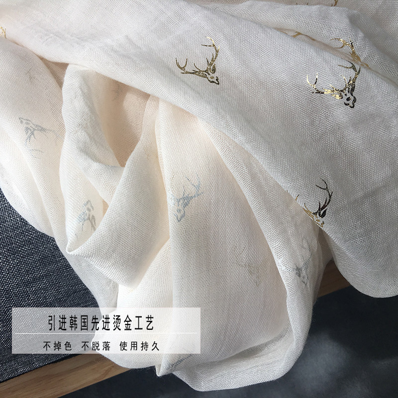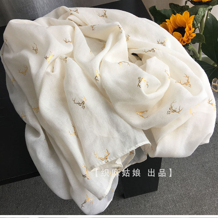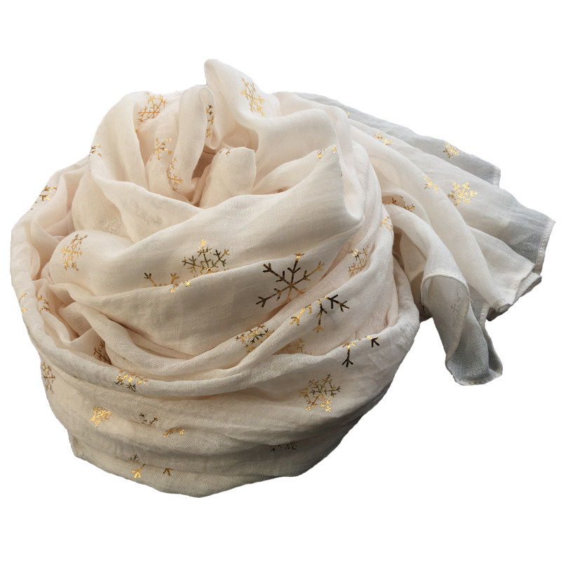 淘宝烫金雪花棉麻围巾女秋冬薄长款韩版时尚保暖围脖文艺披肩丝巾米色