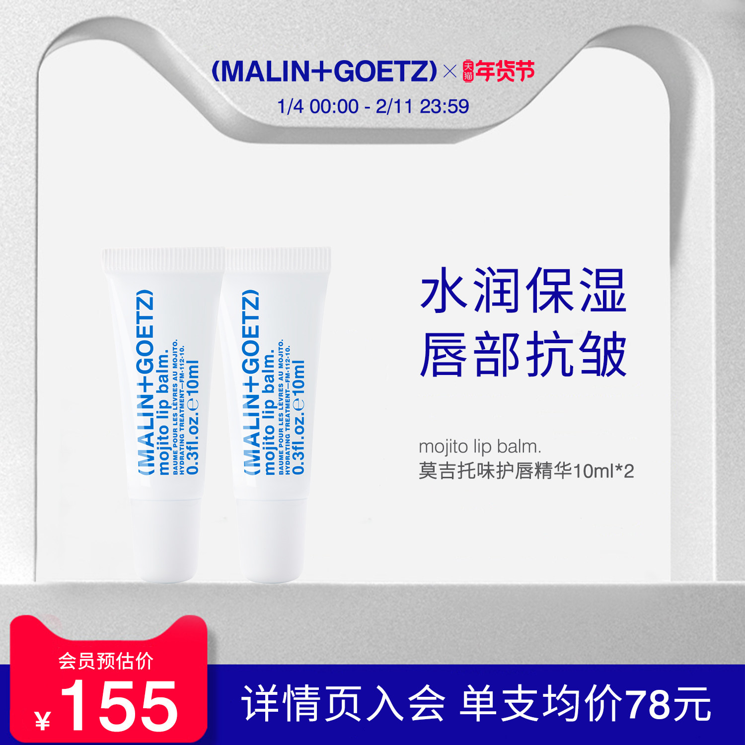 天MALIN+GOETZ马林狗子唇膏防干裂修护淡唇纹保湿男女可用