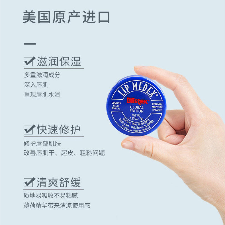 天blistex/百蕾适碧唇小蓝罐瓶润唇膏儿童滋润男女唇膜防干裂官方正