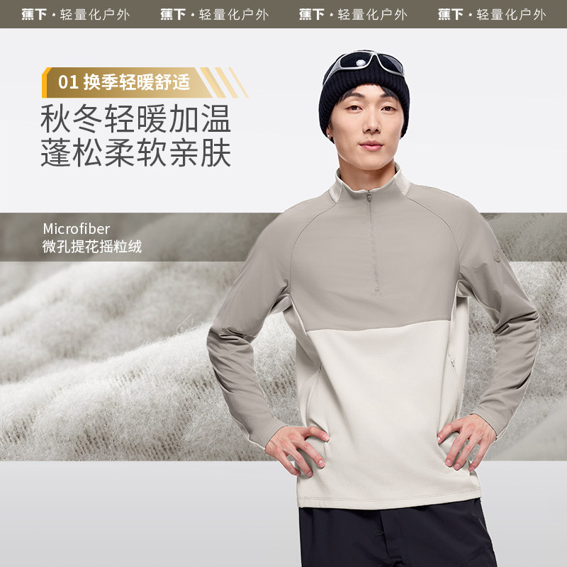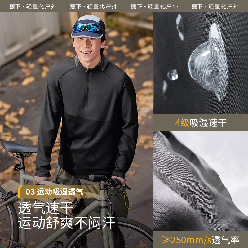 天猫【下拉享优惠】蕉下秋冬男士半拉链防风长袖T恤打底衫速干保暖