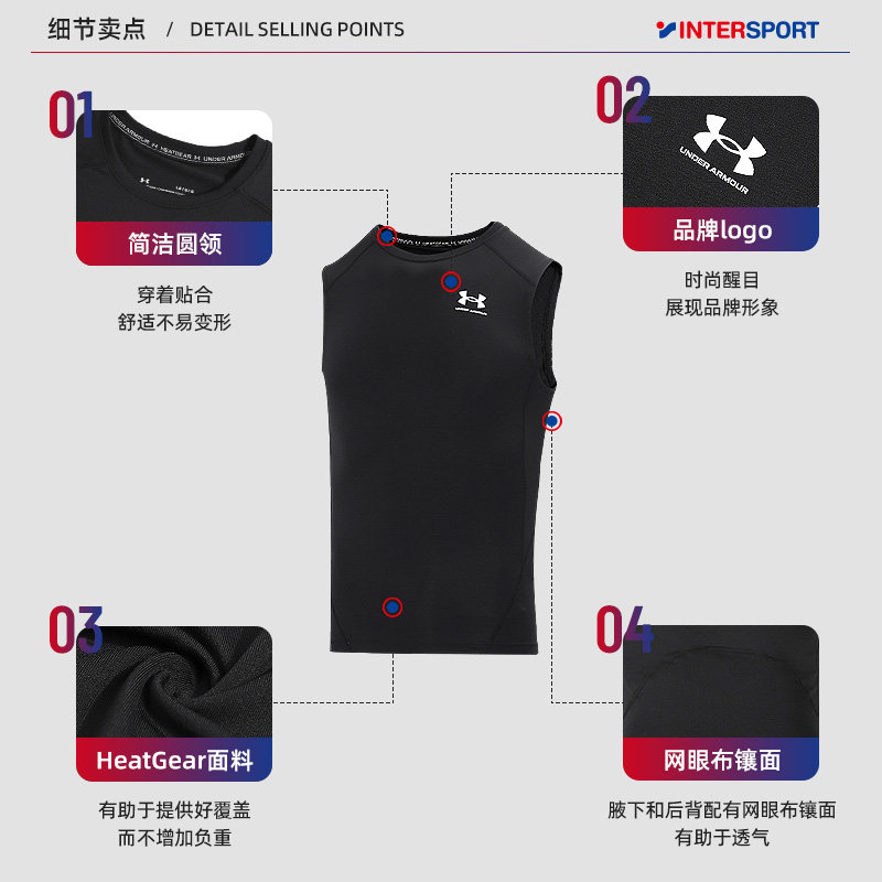天猫安德玛官方运动背心男士健身衣跑步训练服紧身快干无袖T恤1361522