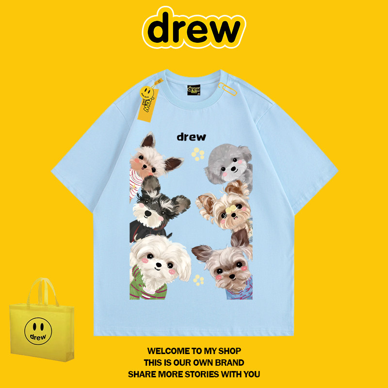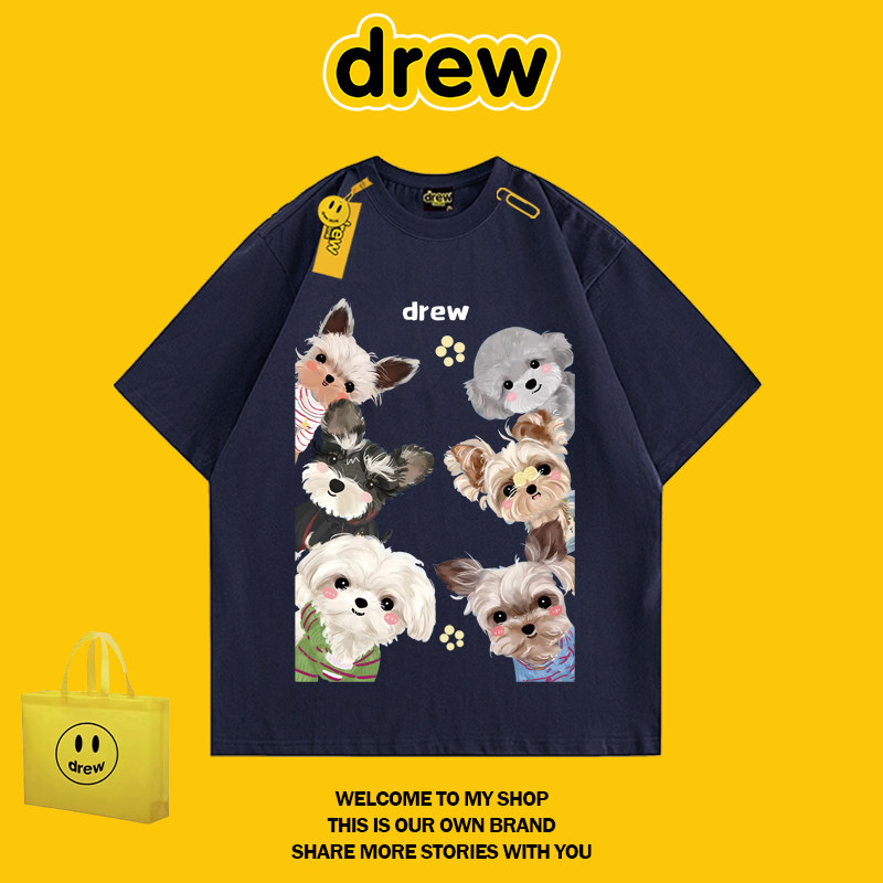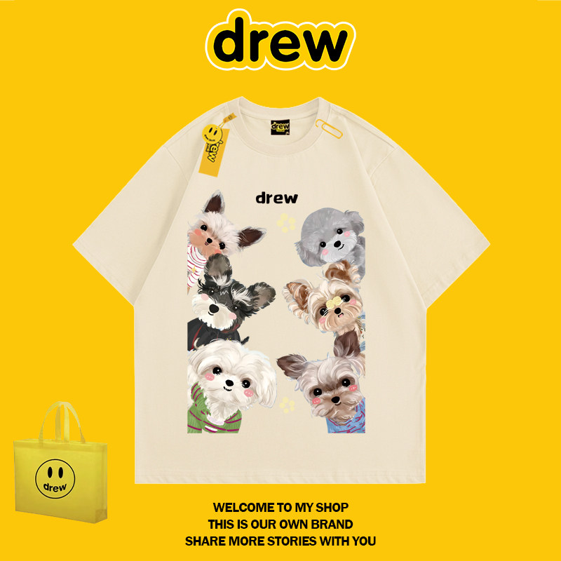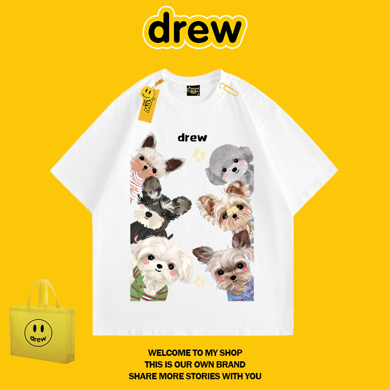 淘宝DREW美式潮牌马尔济斯雪纳瑞狗狗短袖t恤男女同款宽松纯棉上衣INS